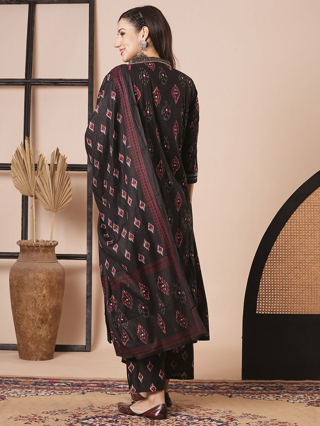 Black and Grey color Salwar Kameez in Blended Cotton fabric with Embroidered, Printed work