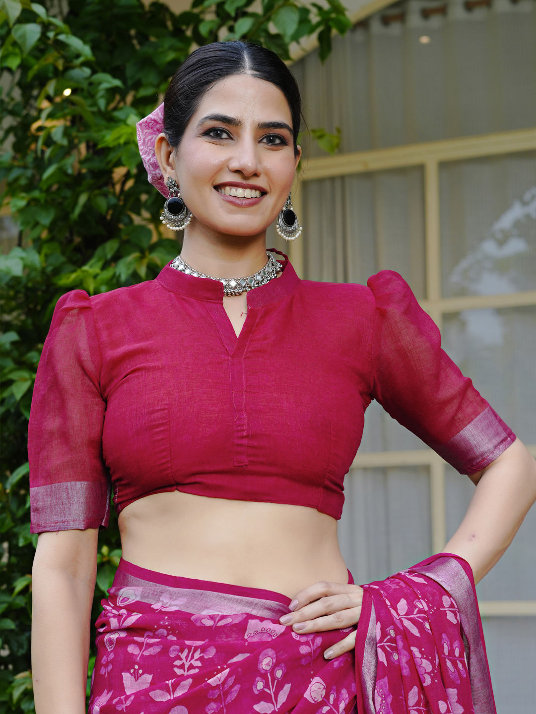 Blended Cotton Traditional Saree in Pink and Majenta with Printed work