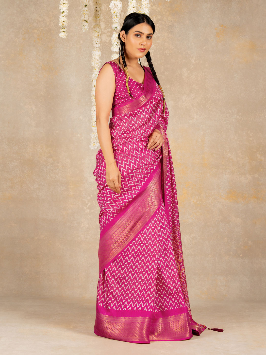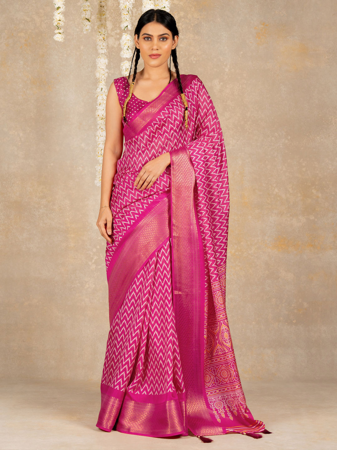 Pink and Majenta color Saree in Blended Cotton fabric with Printed work