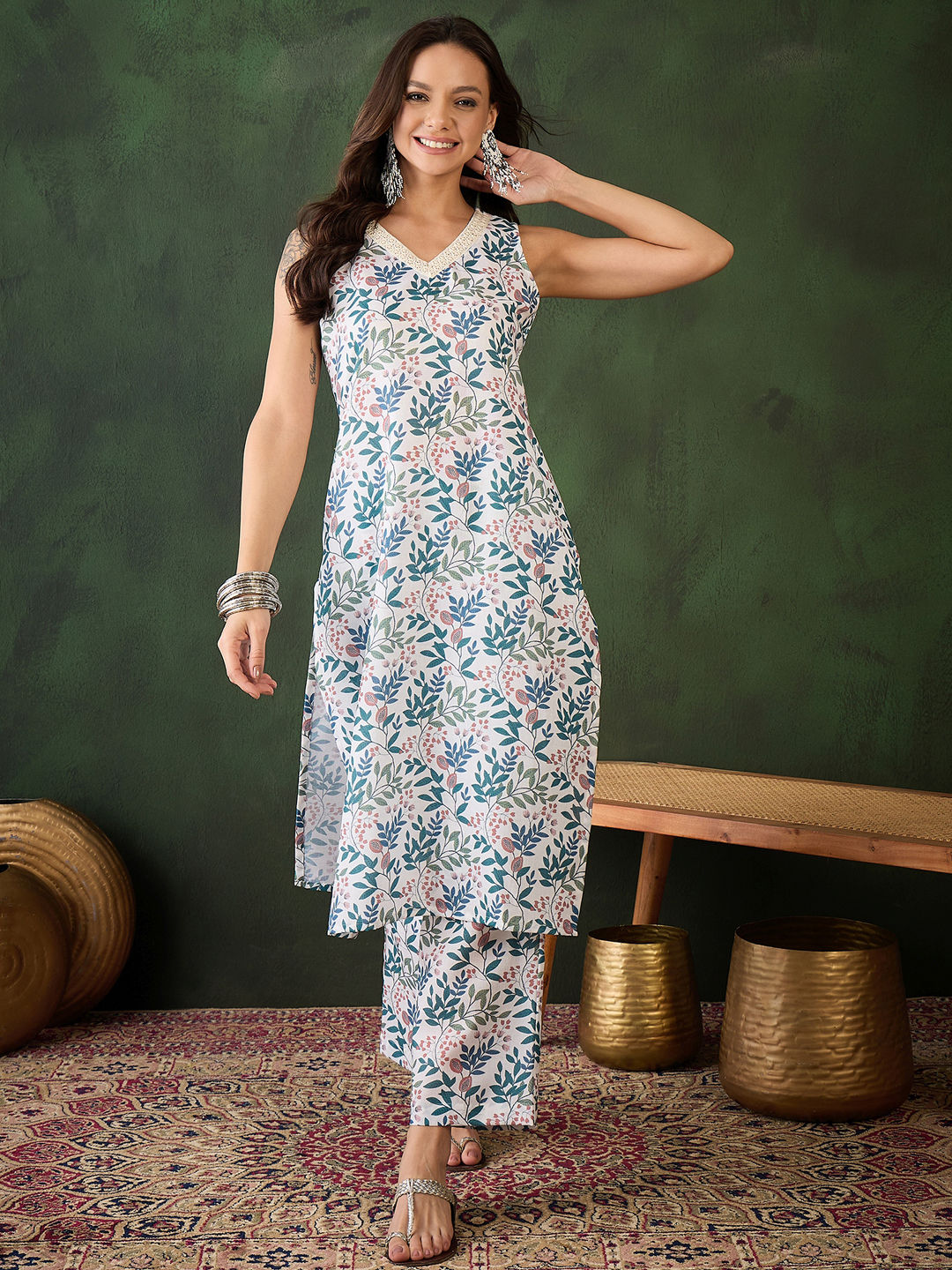 in White and Off White with Printed work