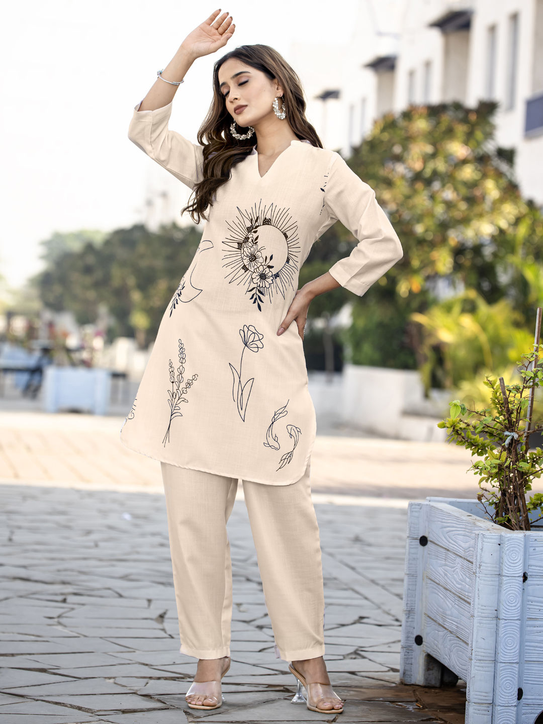 in White and Off White with Printed work