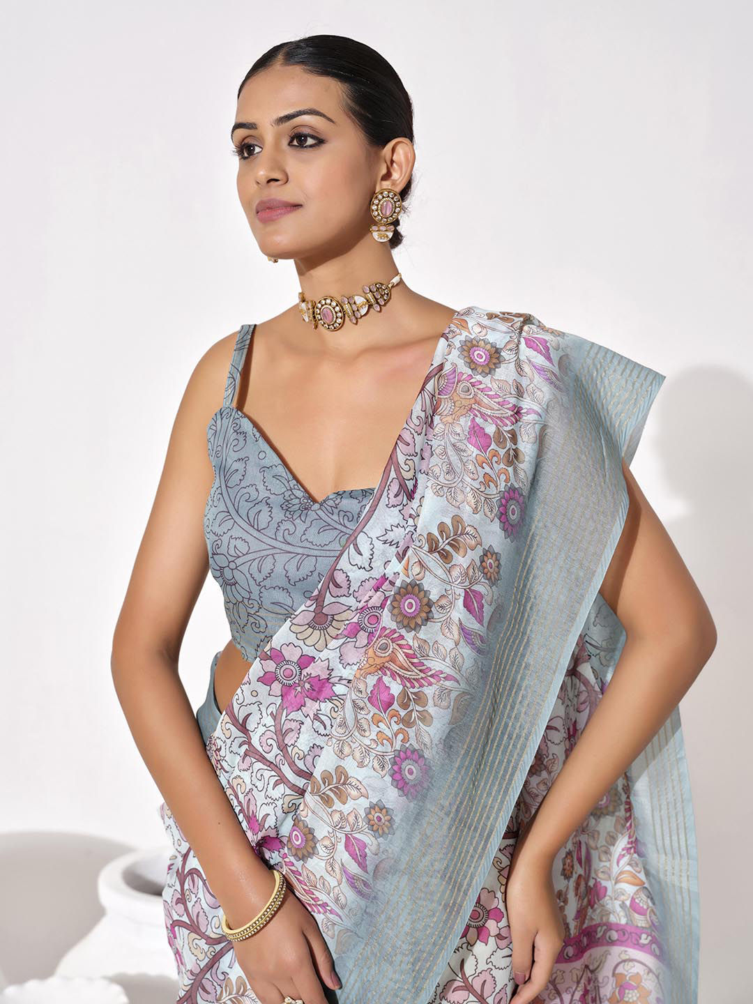 Blended Cotton Summer Saree in Multicolor with Printed work