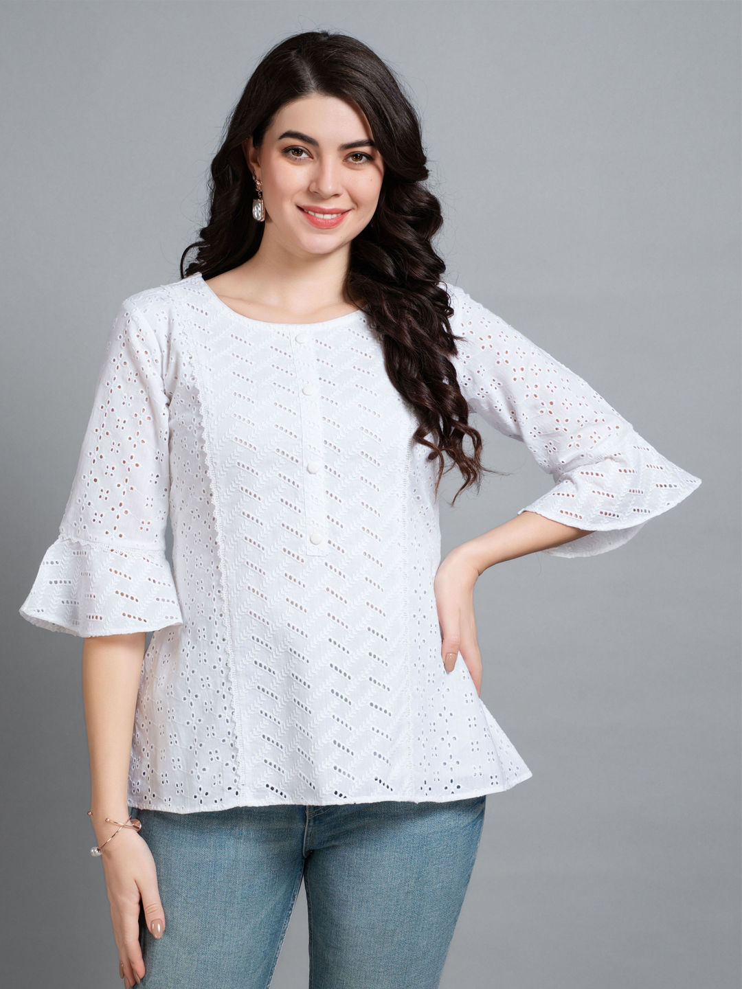 White and Off White color Tops and Shirts in Blended Cotton fabric with Embroidered work