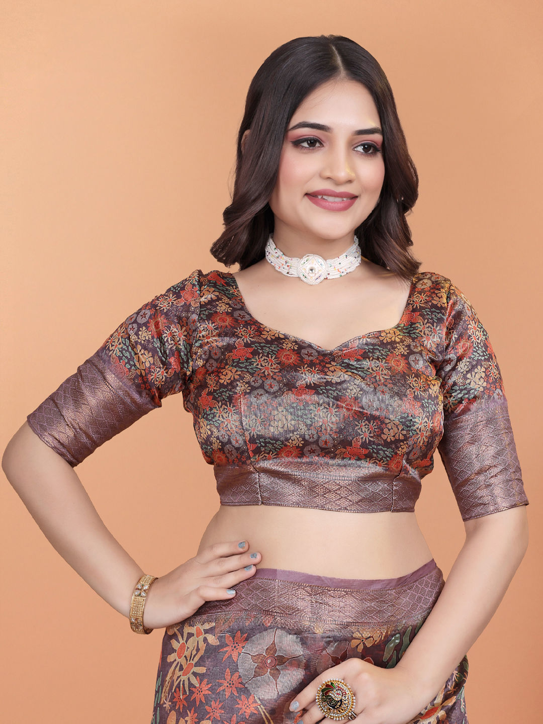 Multicolor color Saree in Blended Cotton fabric with Foil Print work