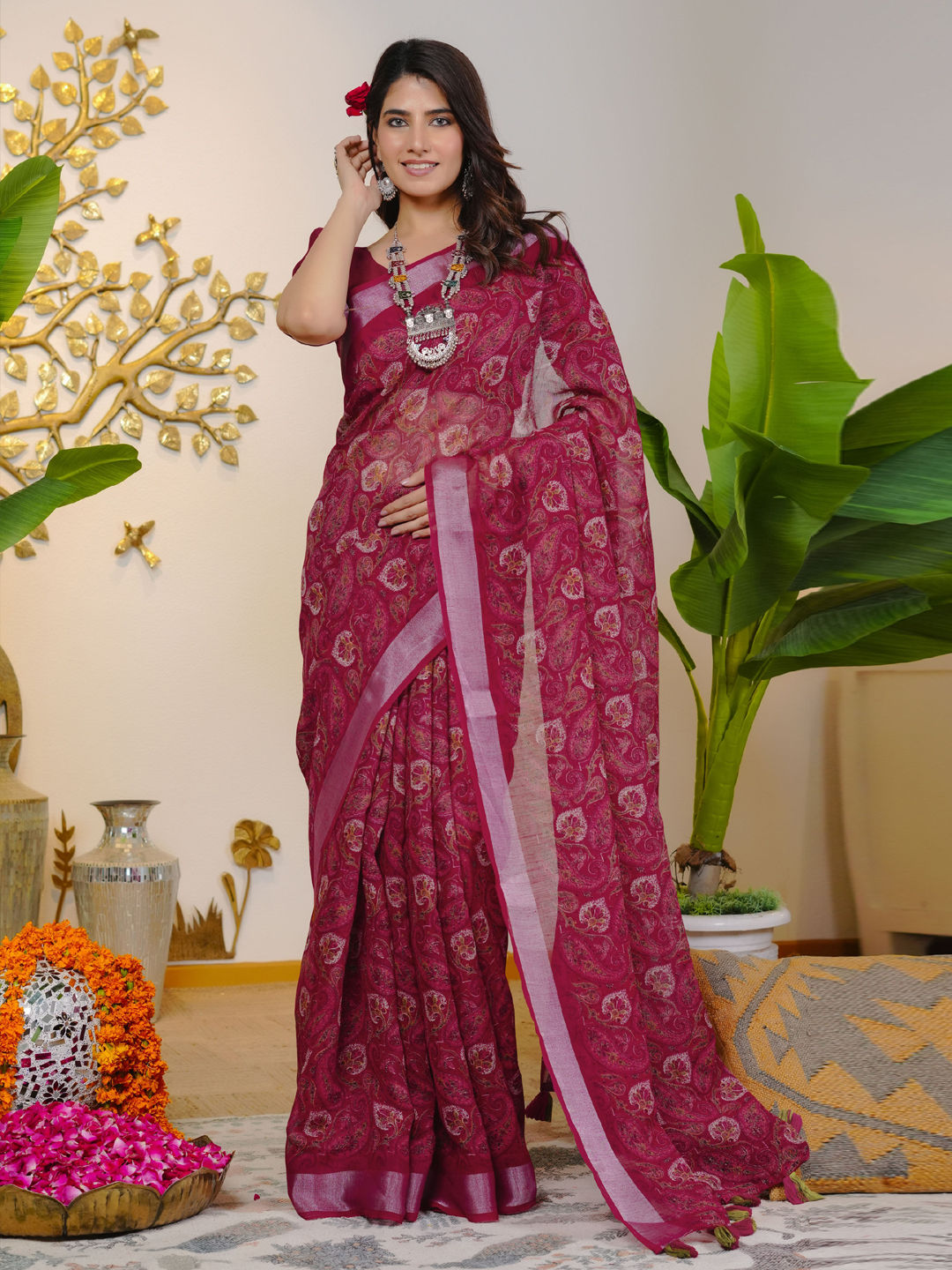 Pink and Majenta color Saree in Blended Cotton fabric with Printed work