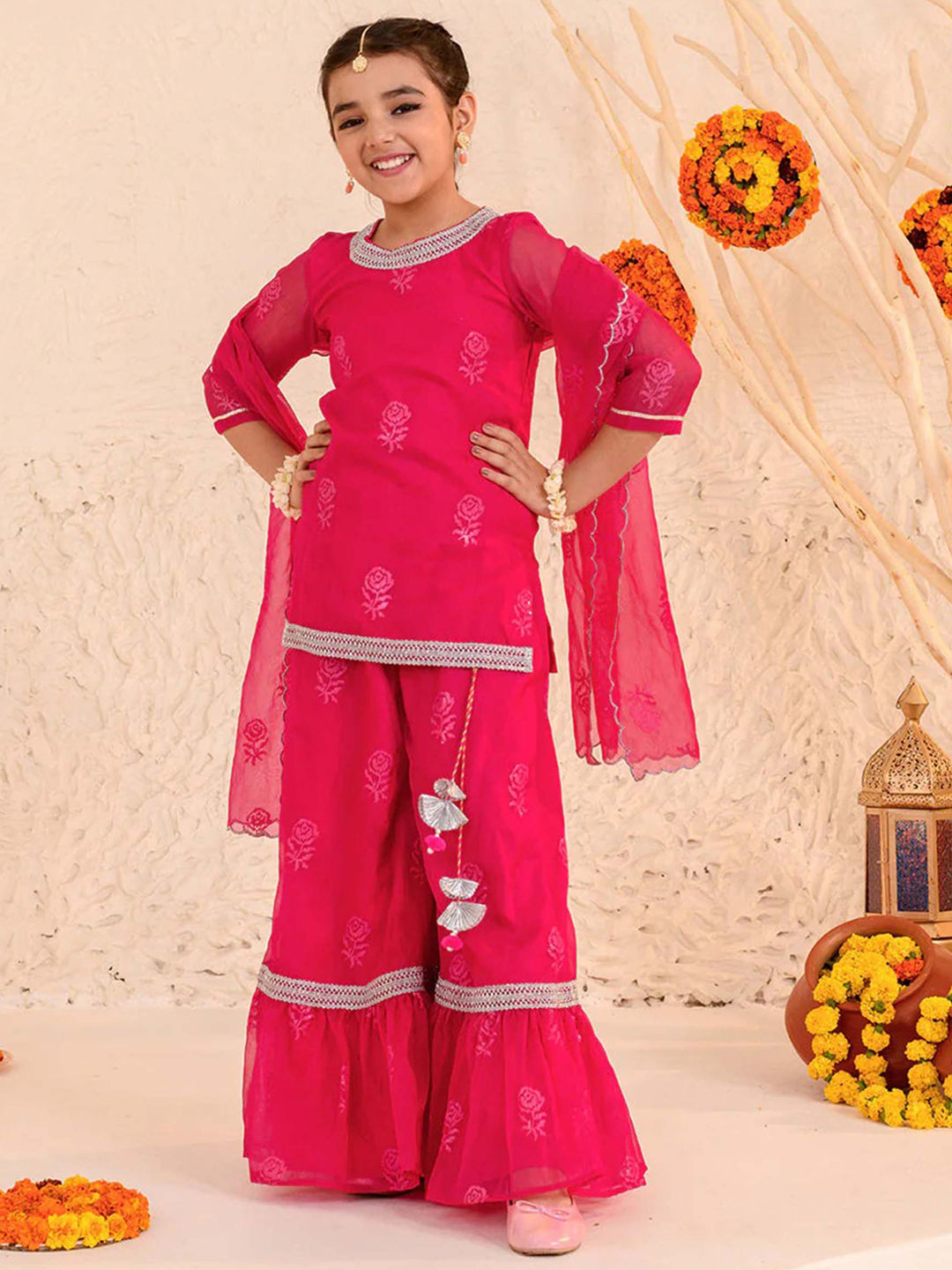 Cotton Wedding Kids Salwar in Pink and Majenta with Printed work