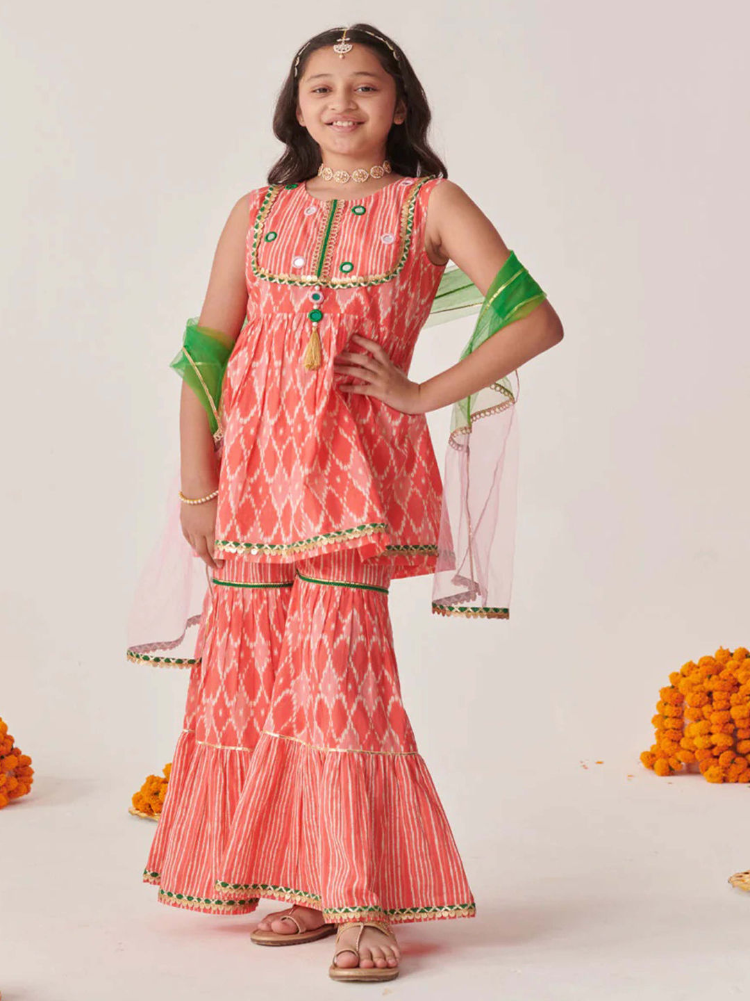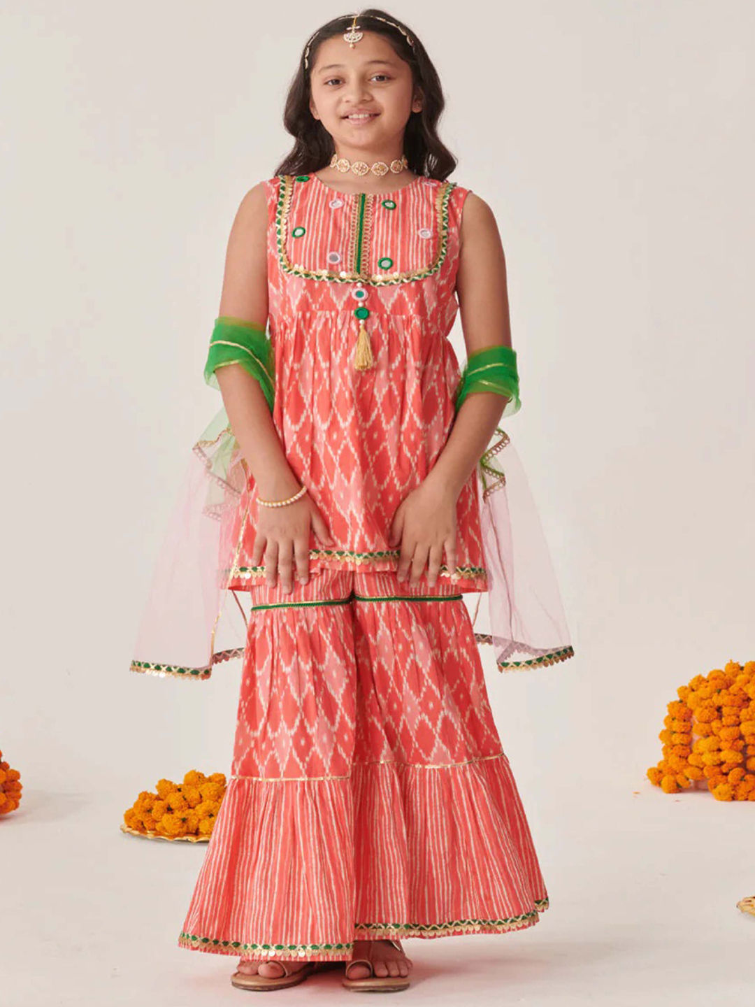 Blended Cotton Wedding Kids Salwar in Pink and Majenta with Lace work