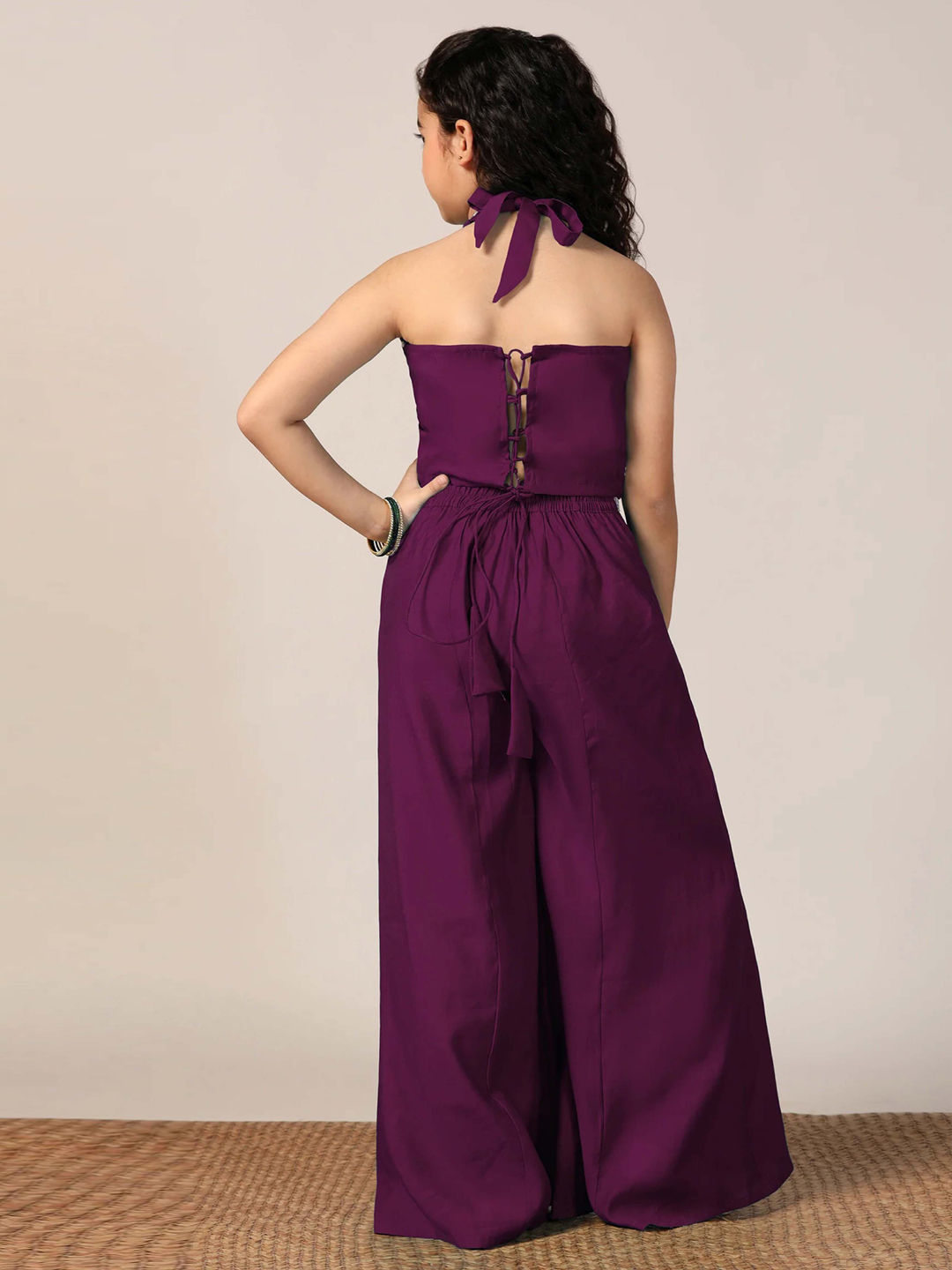 Purple and Violet color Girls Top with Bottom in Blended fabric with Embroidered work
