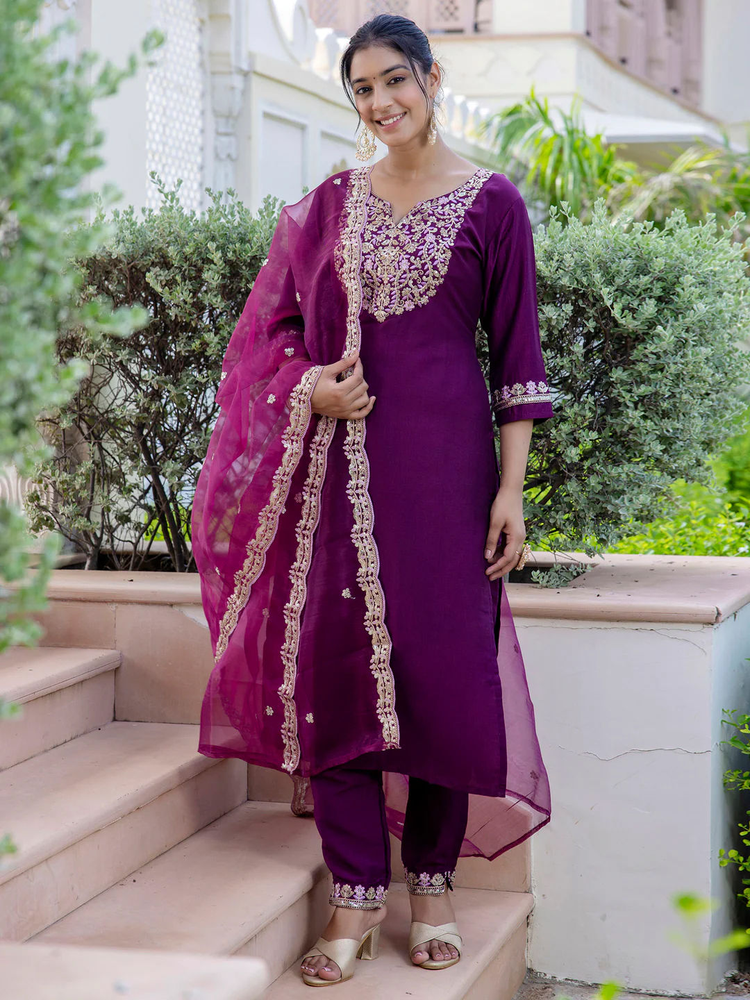 Purple and Violet color Salwar Kameez in Blended fabric with Embroidered, Sequence work