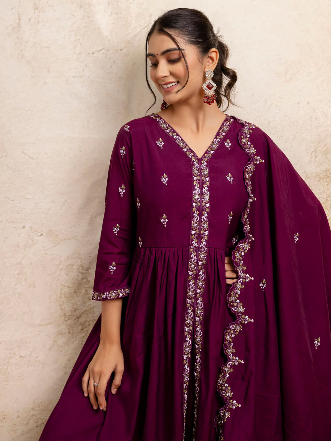 Purple and Violet color Salwar Kameez in Blended fabric with Embroidered, Resham, Thread work