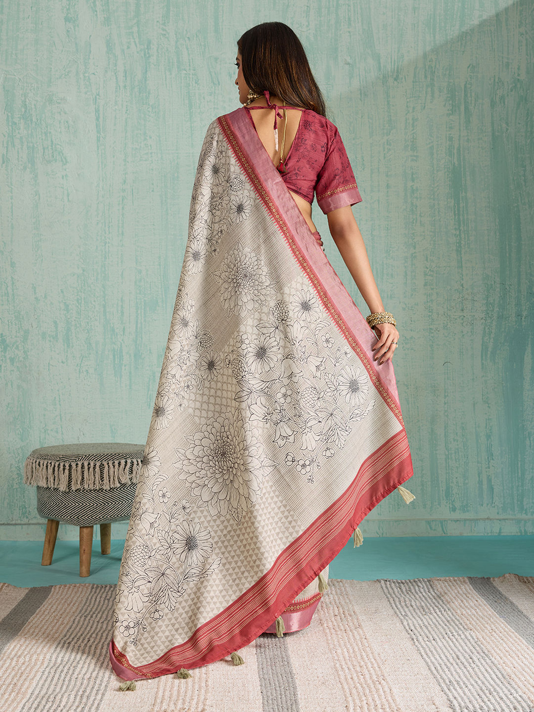 Silk Traditional Saree in Pink and Majenta with Zari work