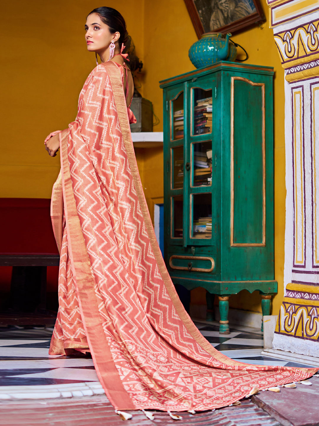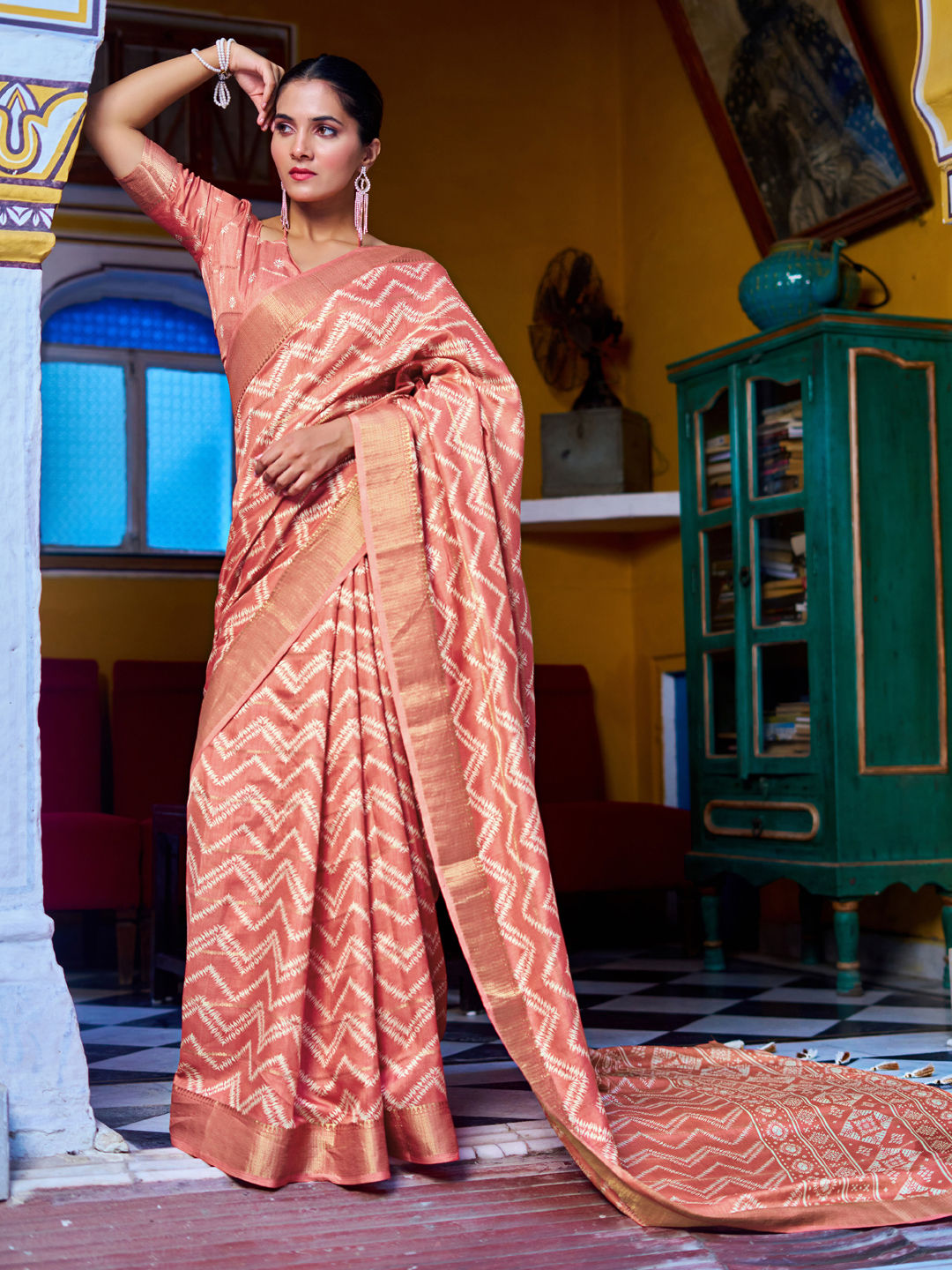 in Orange with Lehariya work