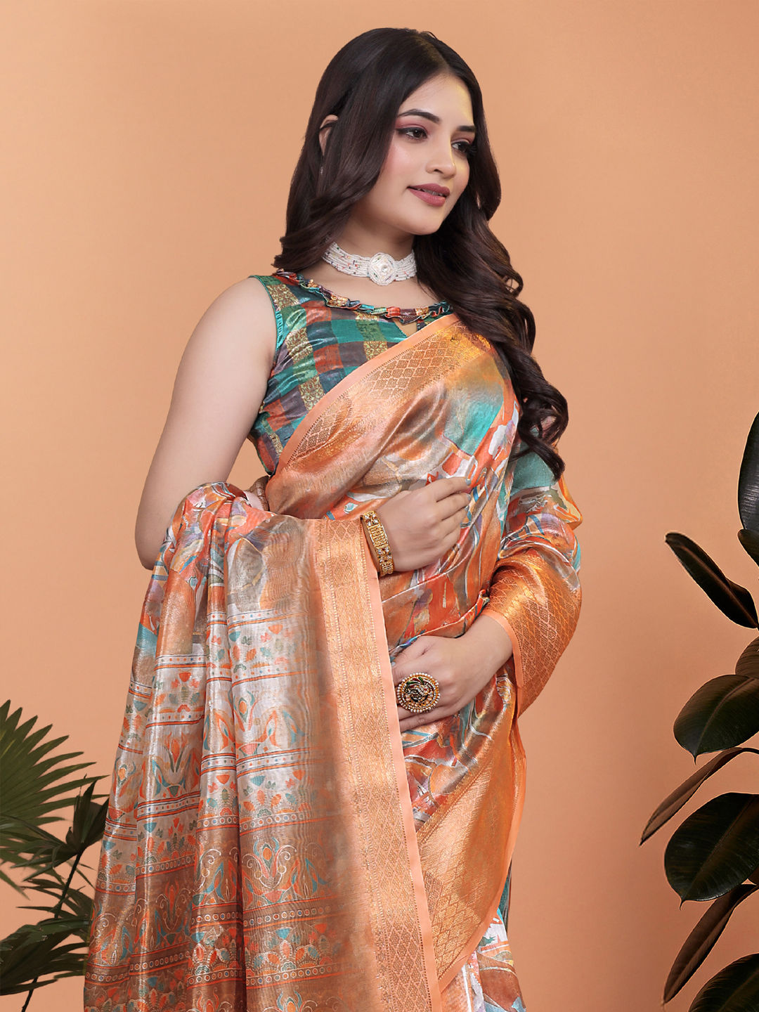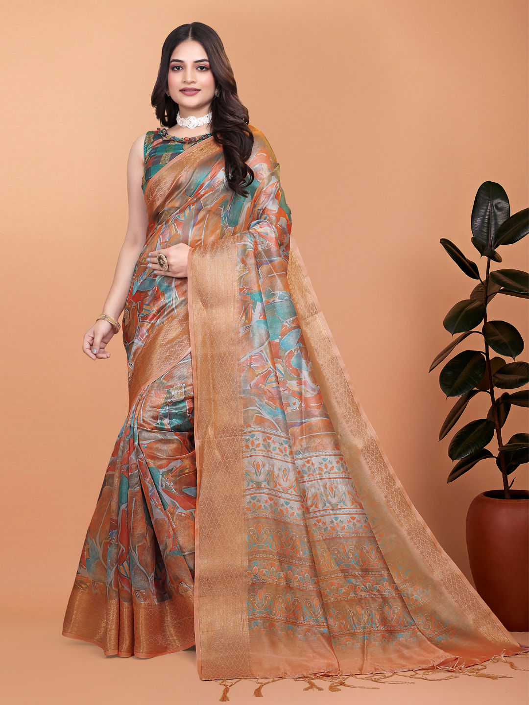 in Orange with Printed work
