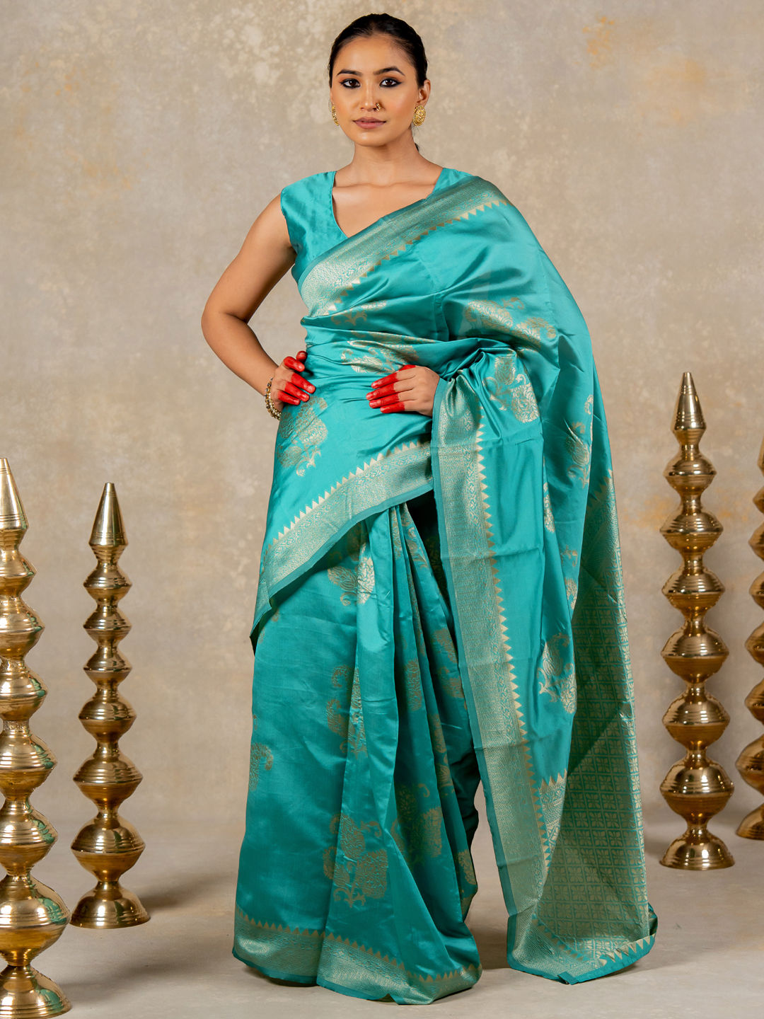 Blue color Saree in Blended, Silk fabric with Weaving, Zari work