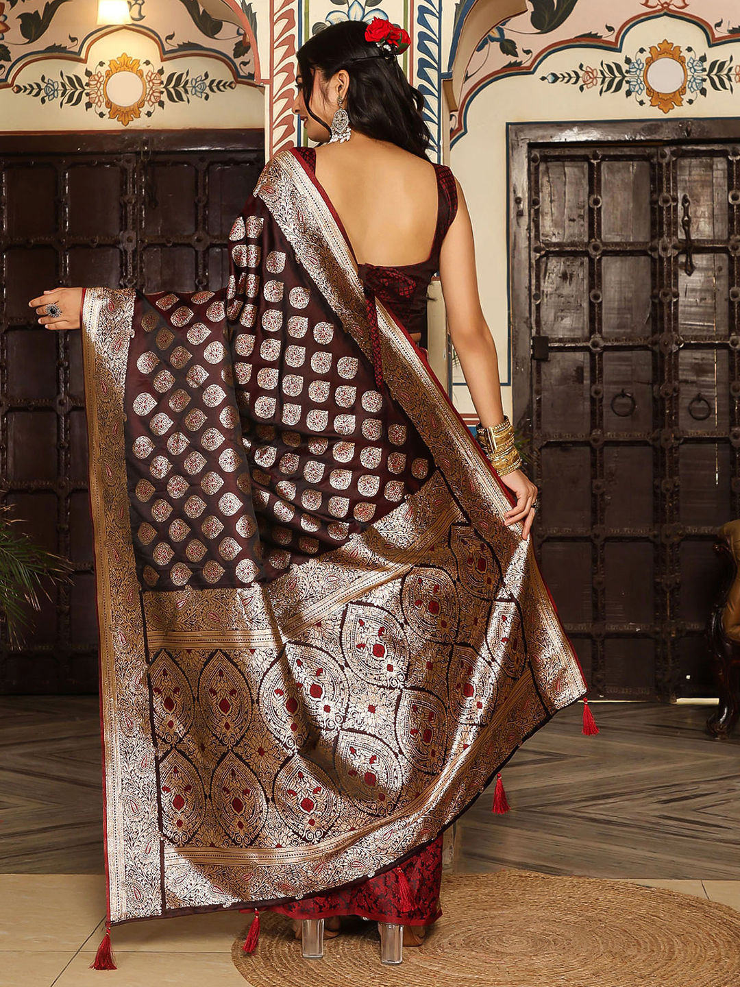 Blended Party Wear Saree in Red and Maroon with Weaving work