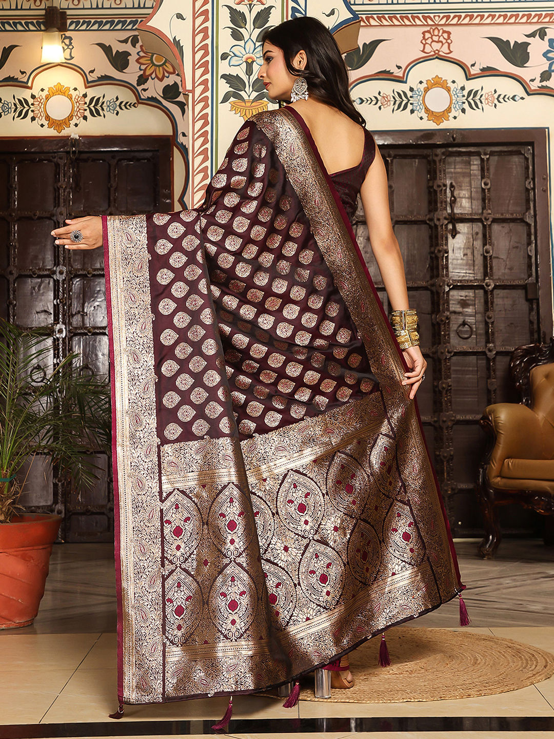Red and Maroon color Saree in Blended, Silk fabric with Weaving work