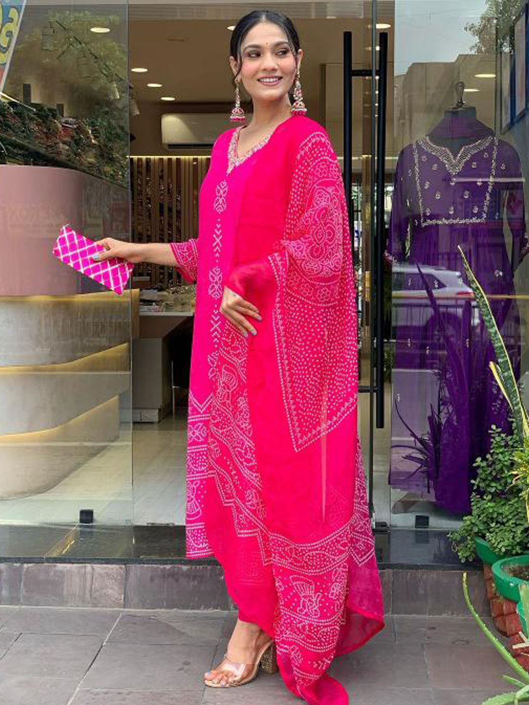 Viscose Festive Salwar Kameez in Pink and Majenta with Embroidered work