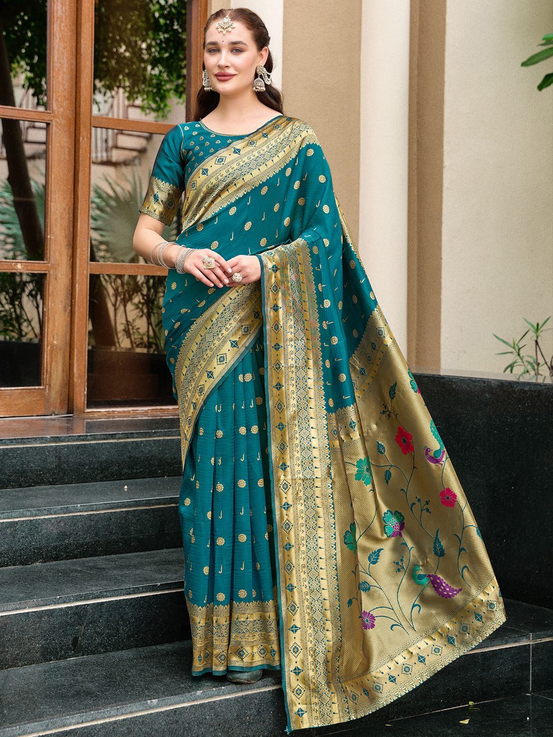 Blue color Saree in Blended fabric with Weaving, Zari work