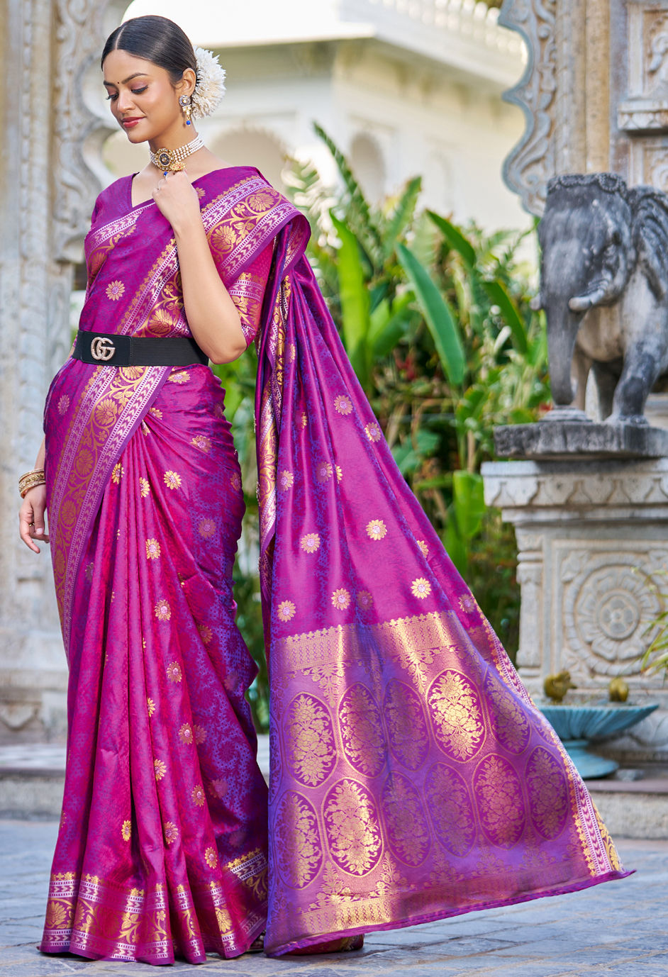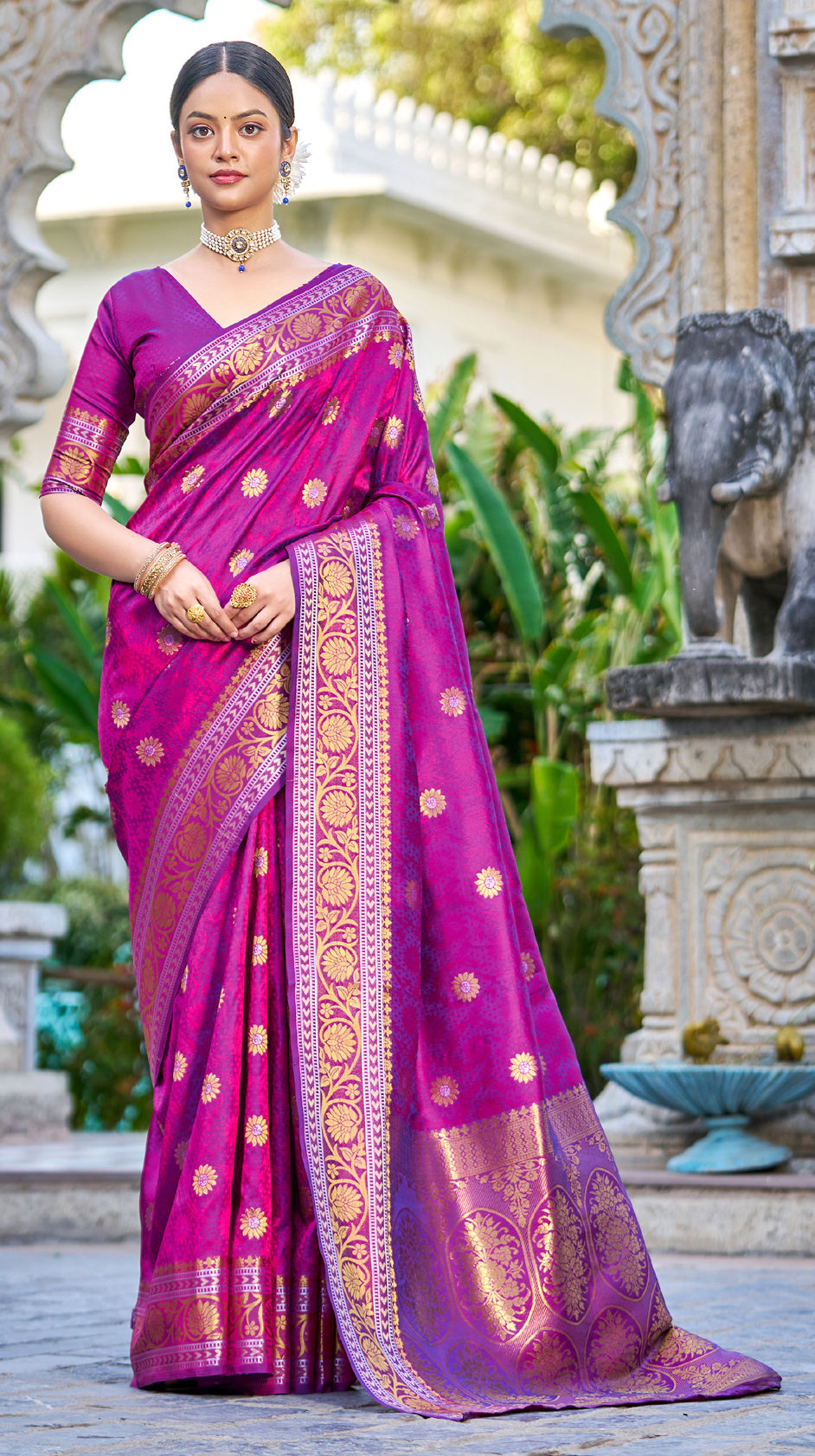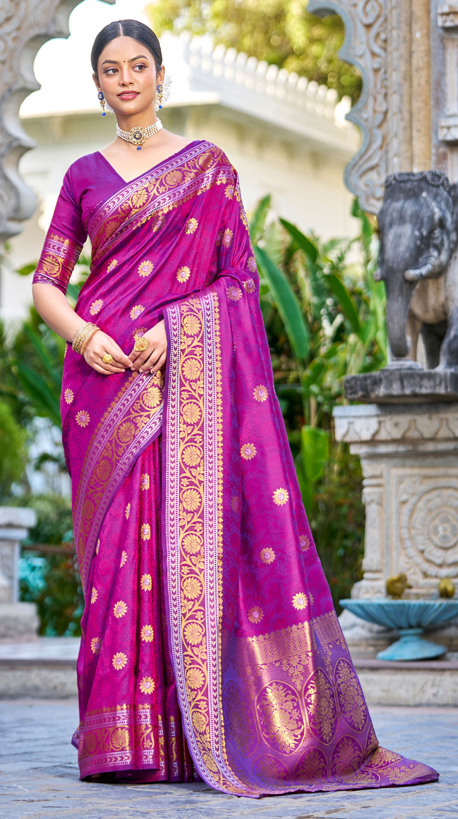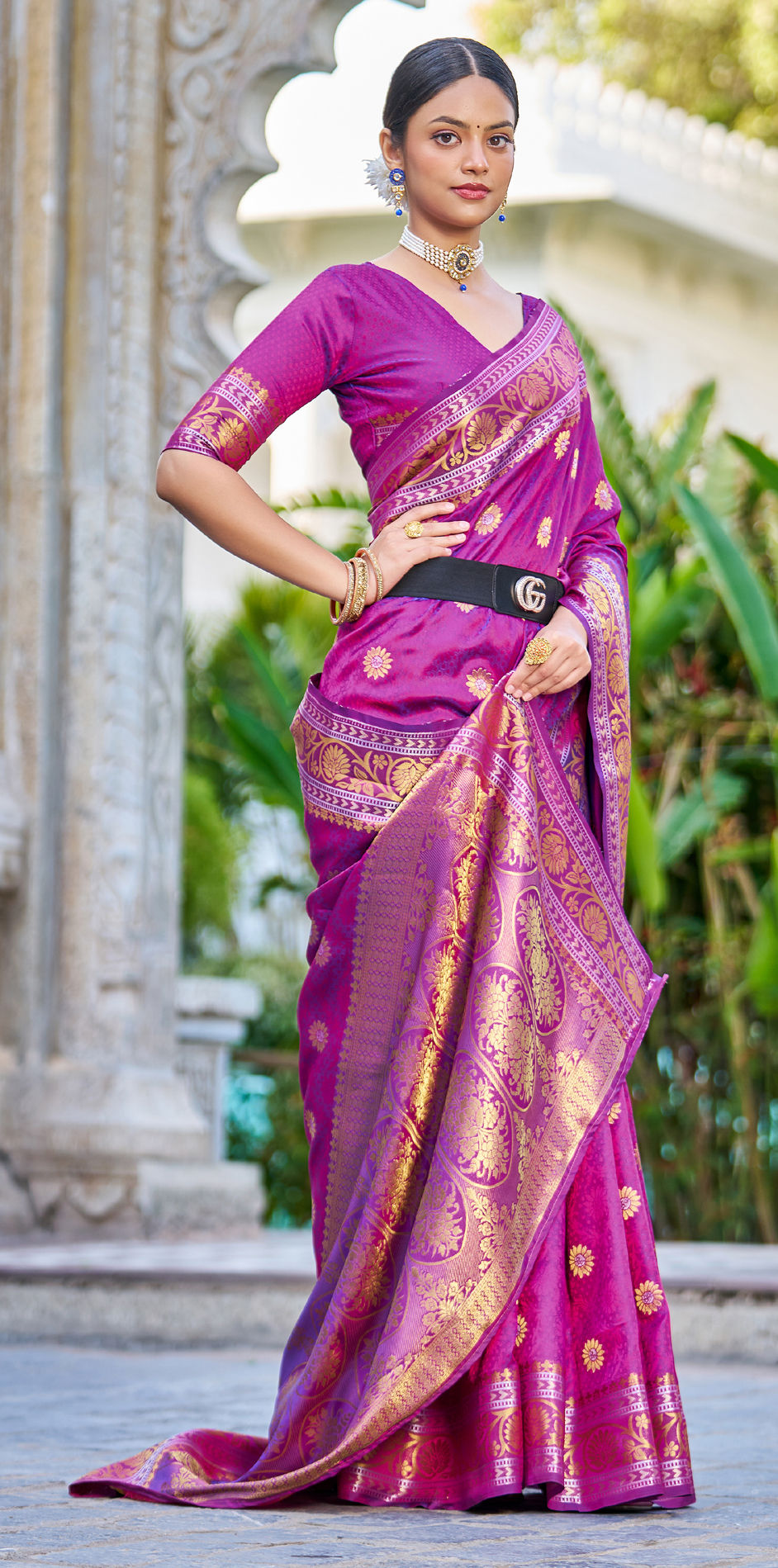 Blended Festive Saree in Pink and Majenta with Weaving work
