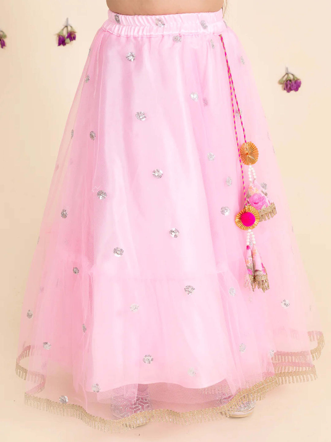 Organza Silk Festive Kids Lehenga in Pink and Majenta with Embroidered work