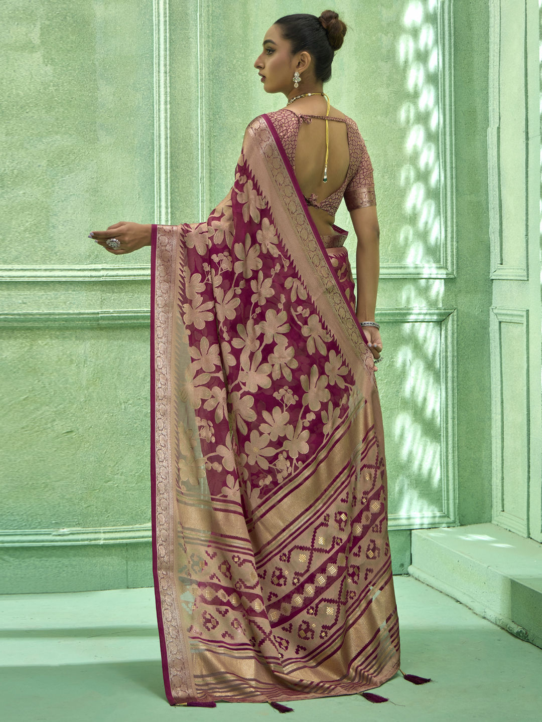 Brasso Traditional Saree in Pink and Majenta with Zari work