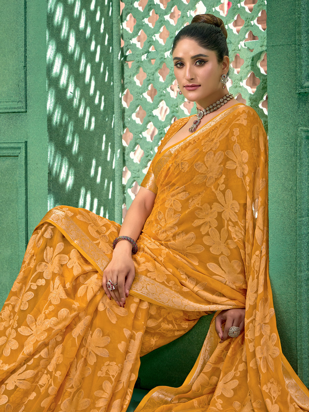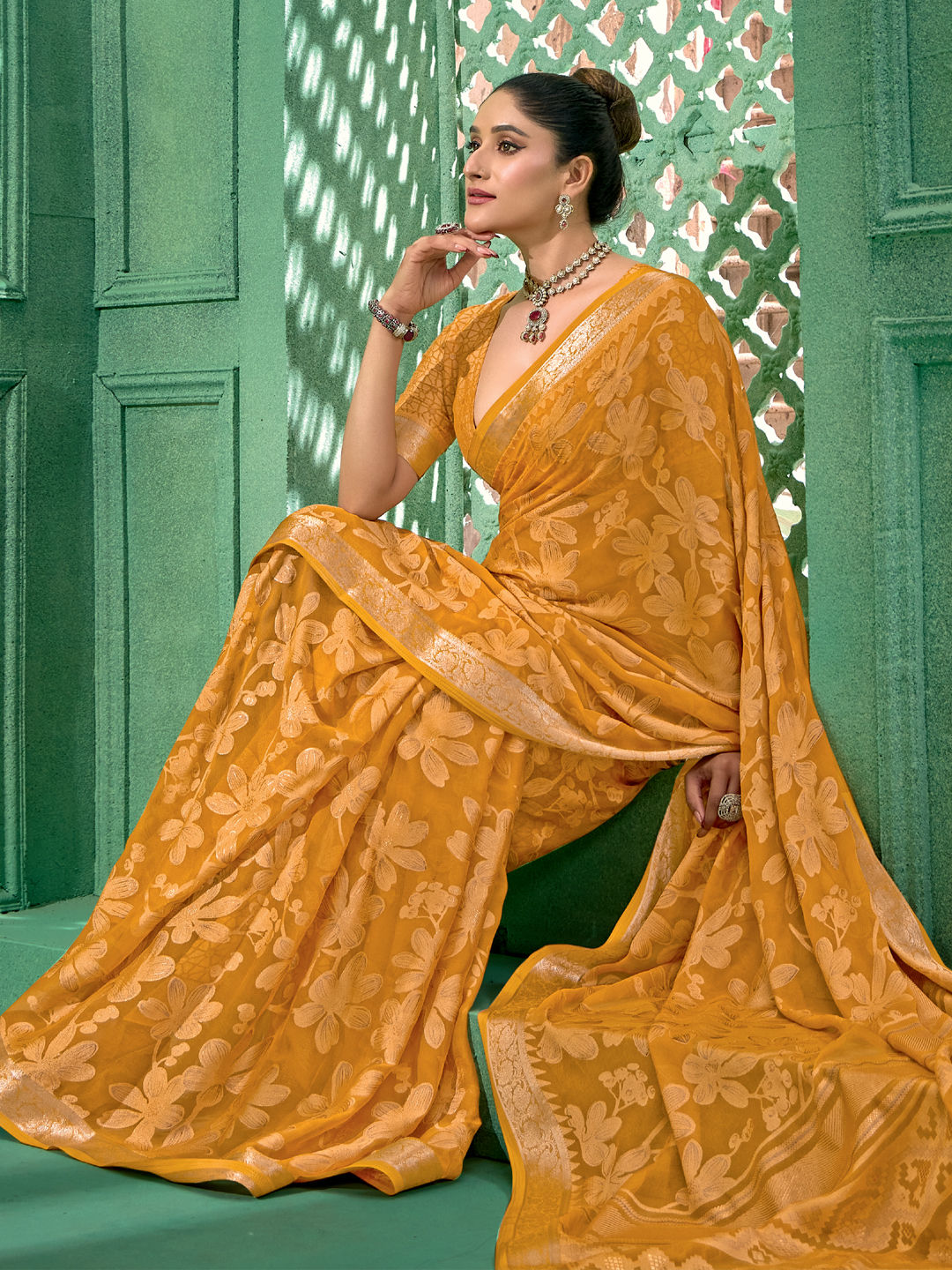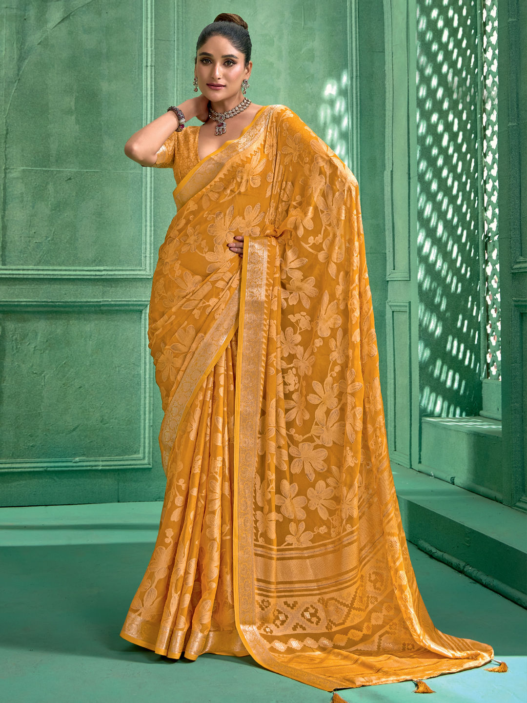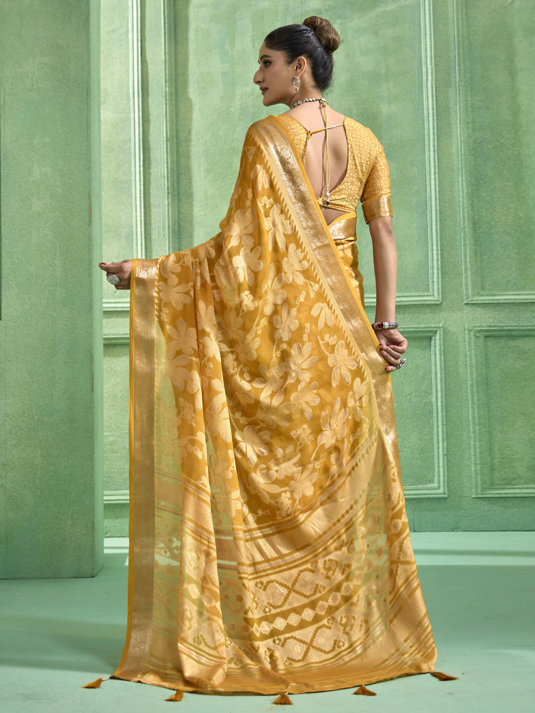 Yellow color Saree in Brasso fabric with Kasab, Zari work