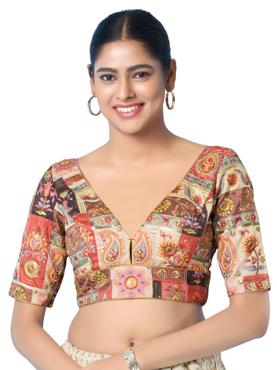 Velvet Party Wear Blouse in Multicolor with Printed work