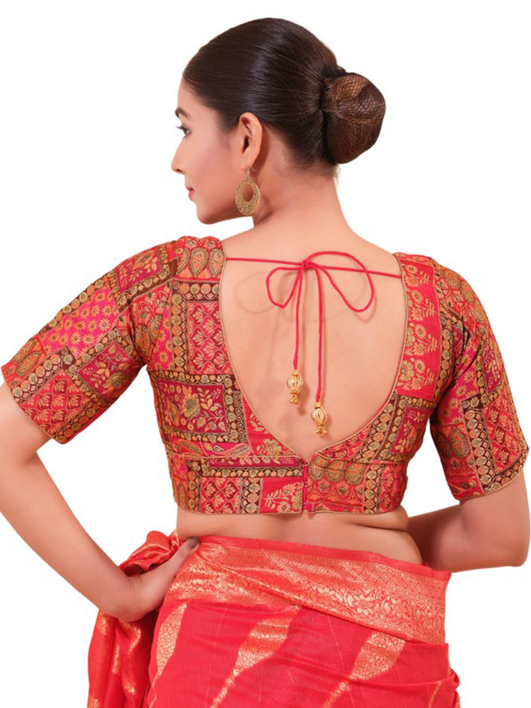 Silk Party Wear Blouse in Pink and Majenta with Printed work