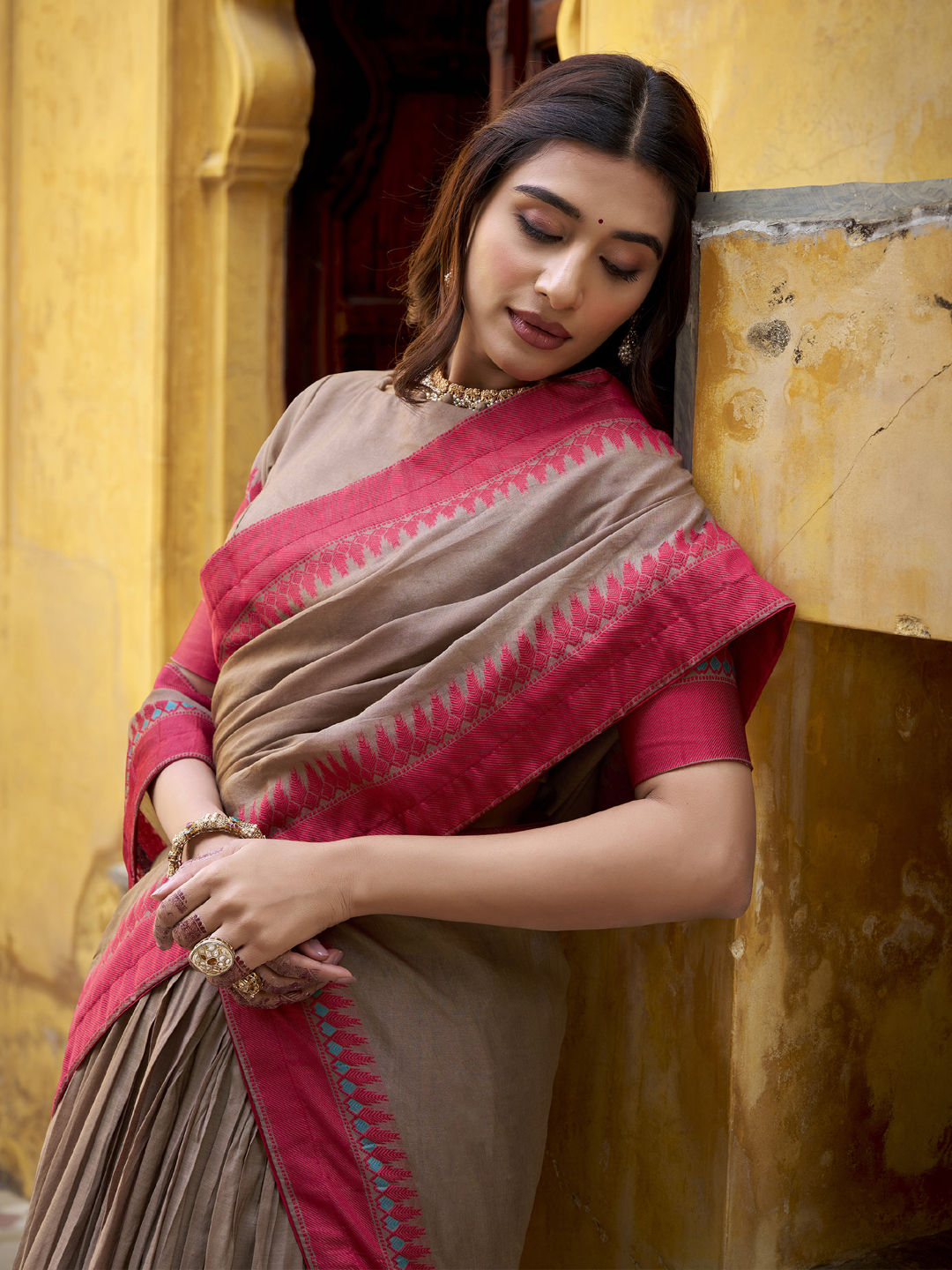 in Beige and Brown with Thread work