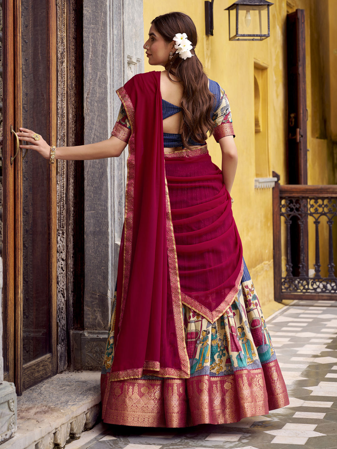 Chanderi Silk Festive Lehenga in Red and Maroon with Printed work