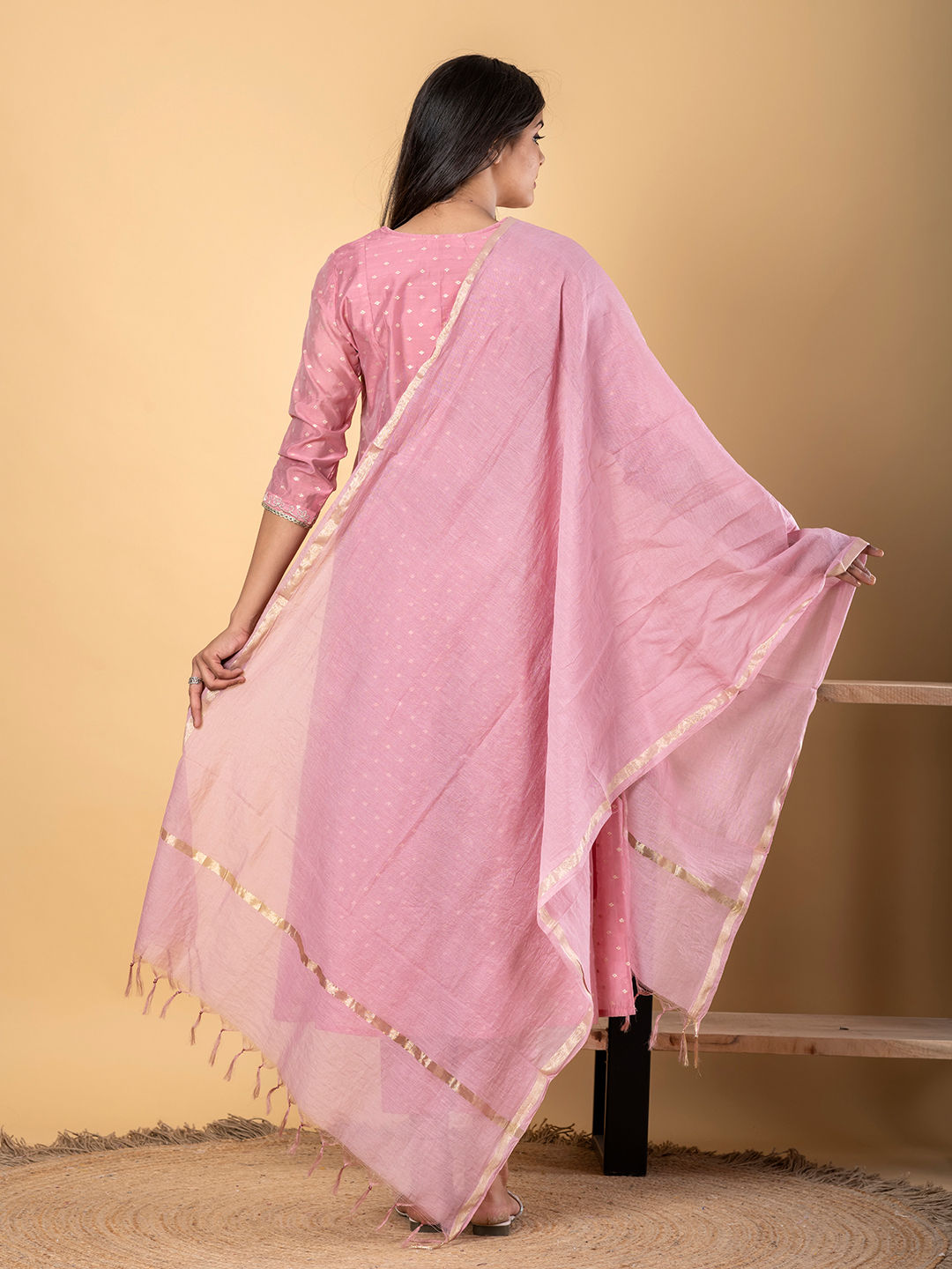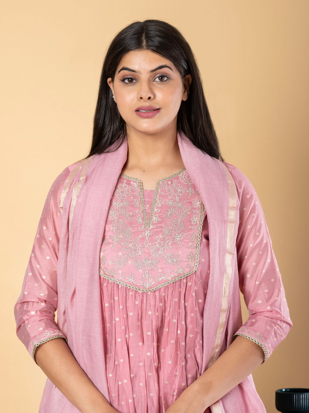 Pink and Majenta color Salwar Kameez in Chanderi Silk fabric with Embroidered, Printed, Resham, Thread work