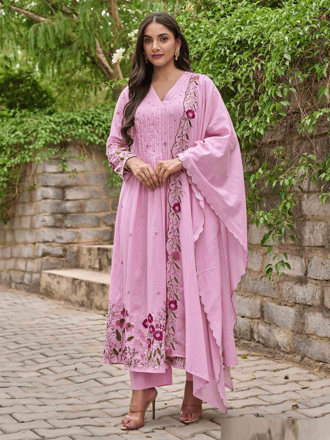 in Pink and Majenta with Embroidered work