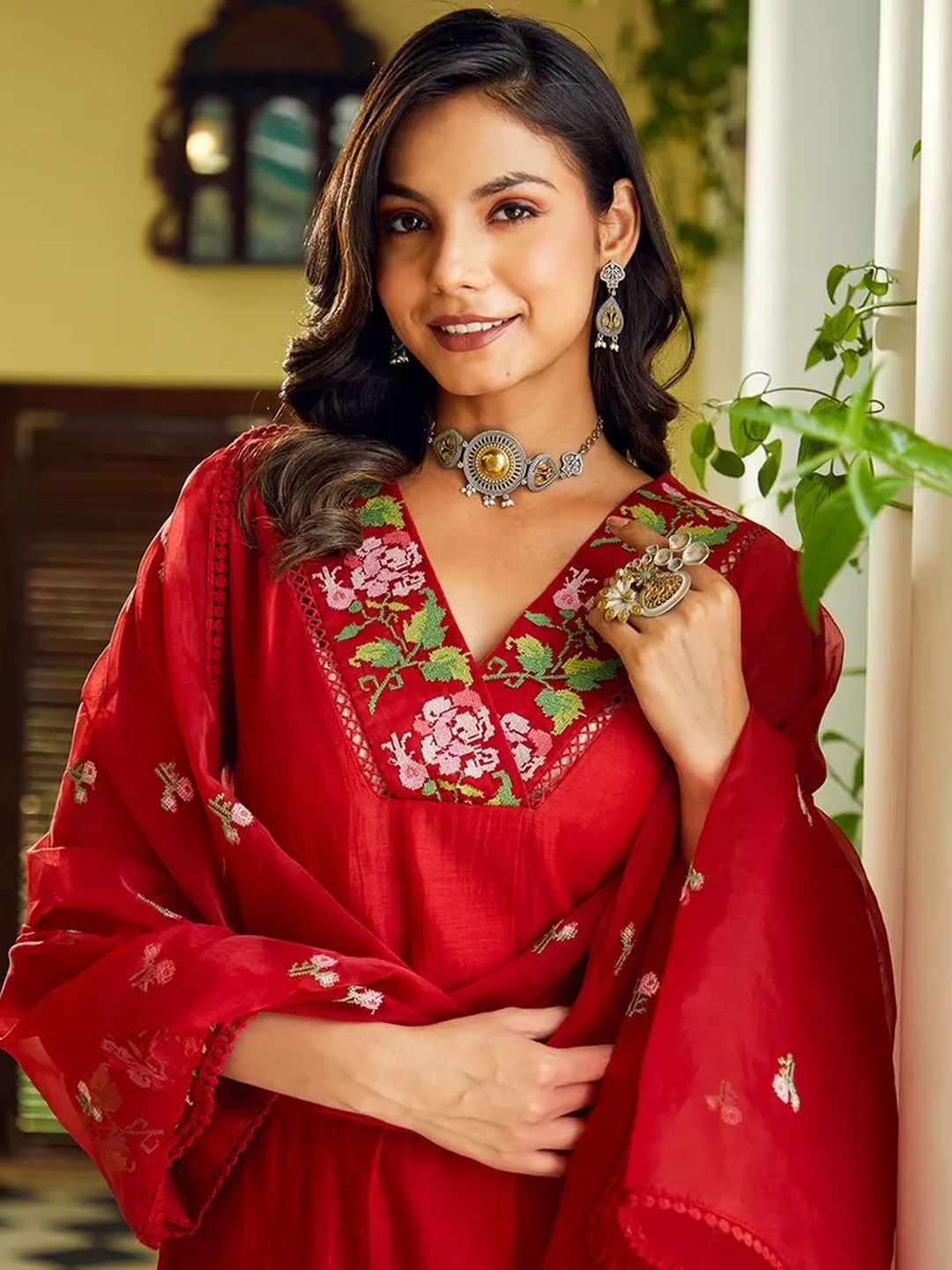 in Red and Maroon with Embroidered work