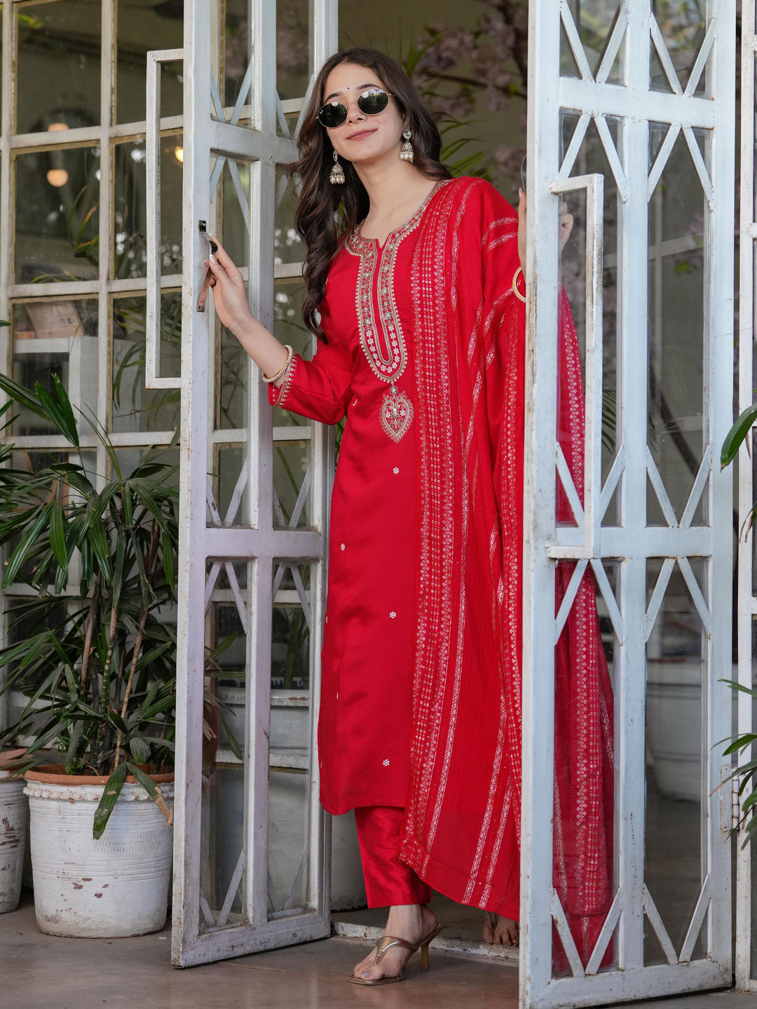 in Red and Maroon with Embroidered work