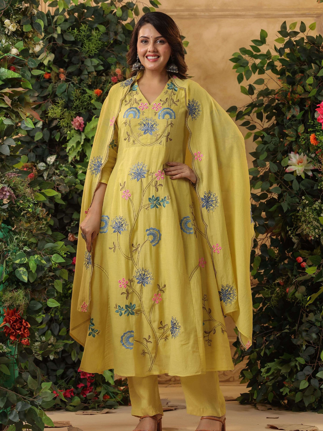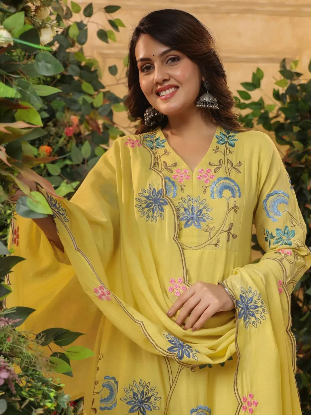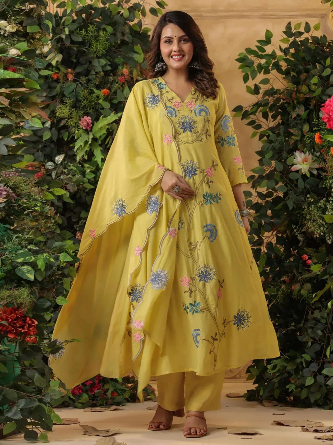 Yellow color Salwar Kameez in Chanderi Silk, Viscose fabric with Embroidered work