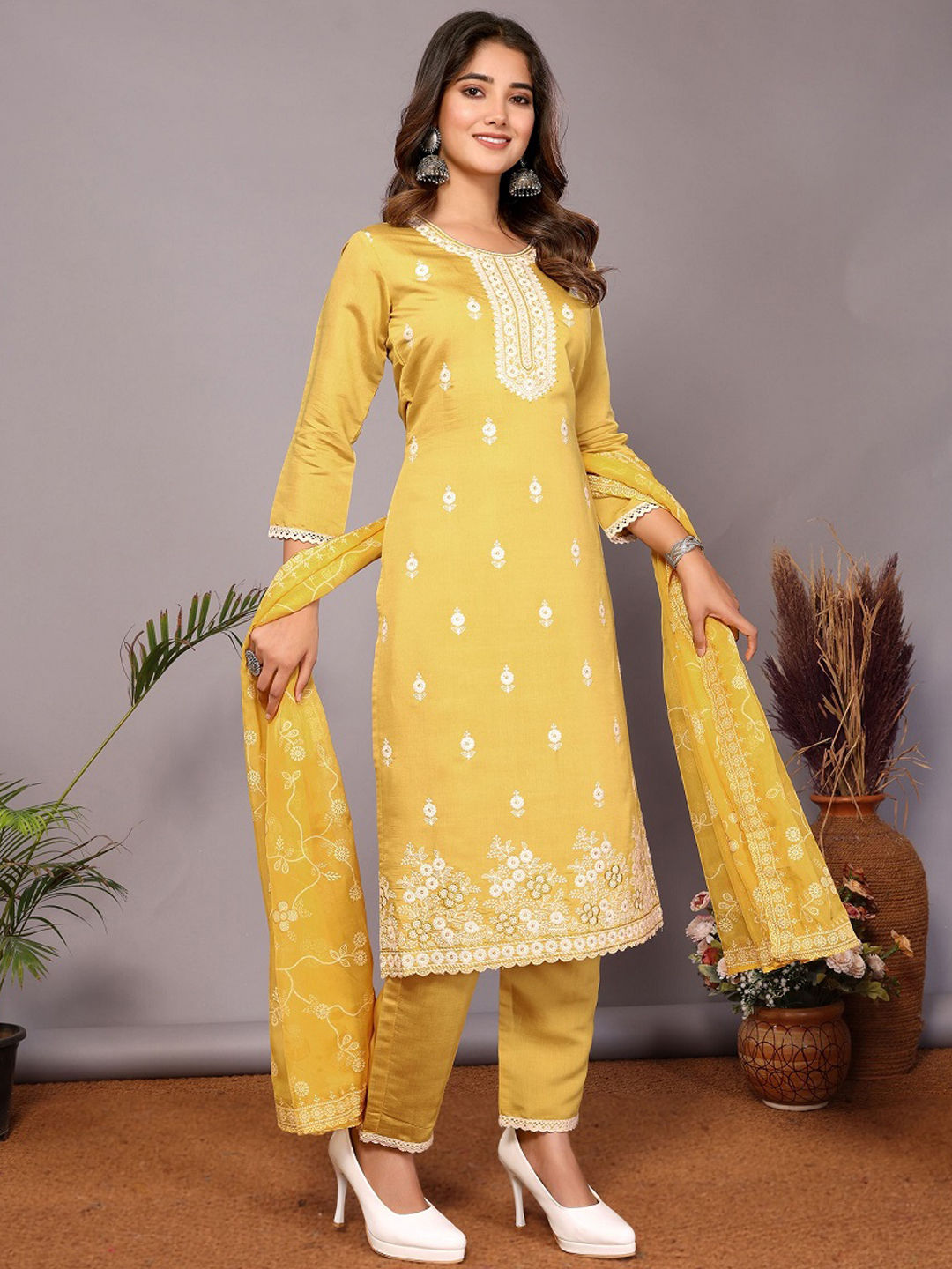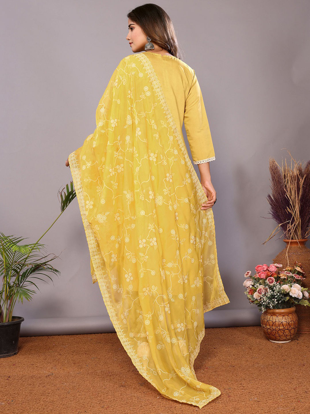 in Yellow with Embroidered work