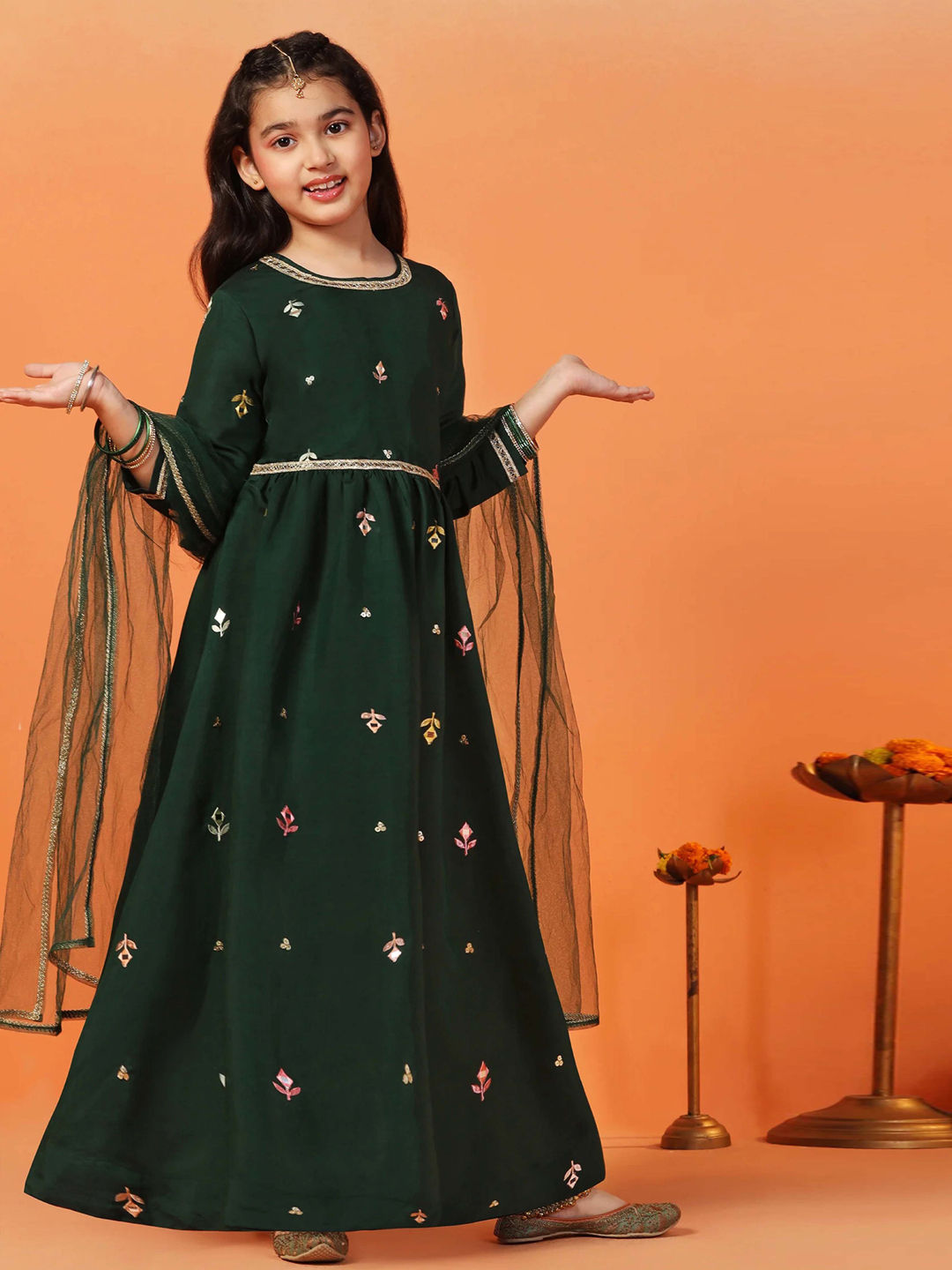 in Green with Embroidered work