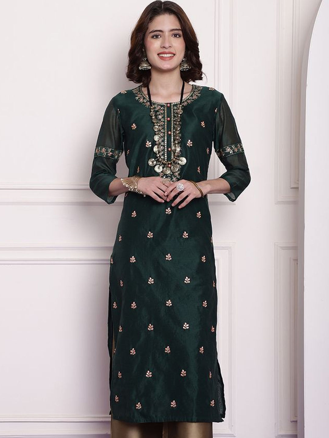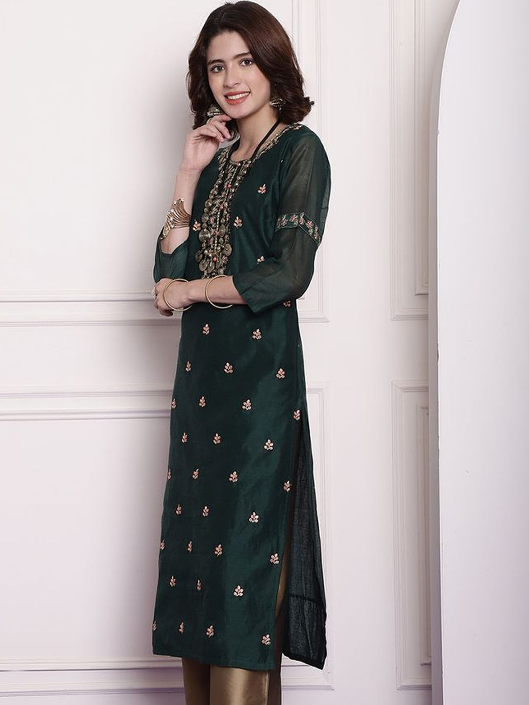 Green color Kurti in Chanderi Silk fabric with Embroidered, Resham, Thread work