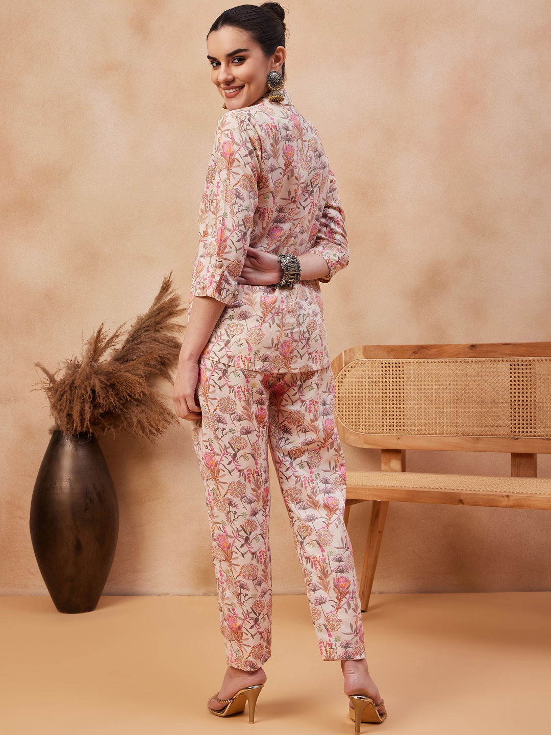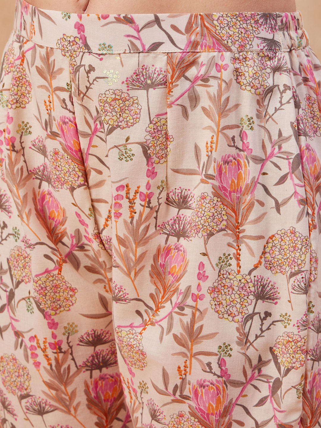 Beige and Brown color Salwar Kameez in Chanderi Silk fabric with Printed work