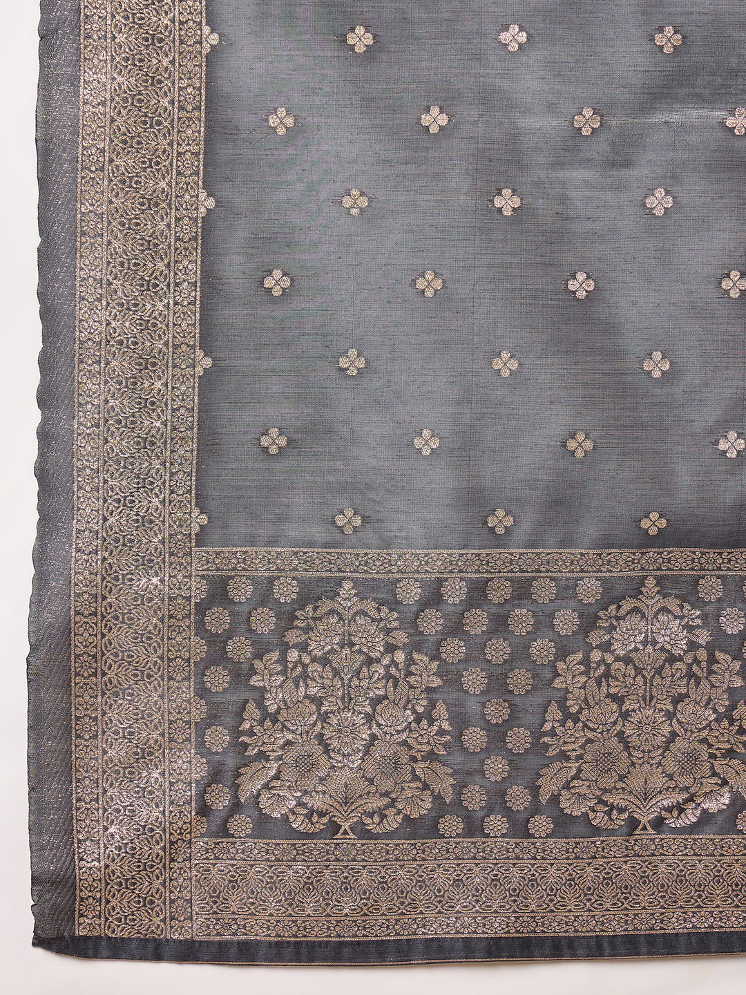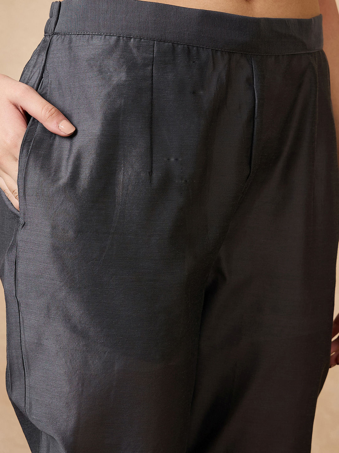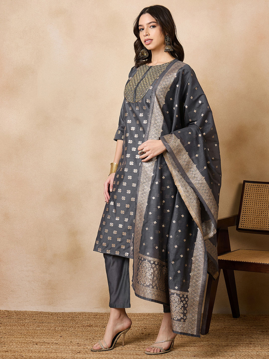 Black and Grey color Salwar Kameez in Chanderi Silk fabric with Embroidered, Thread work