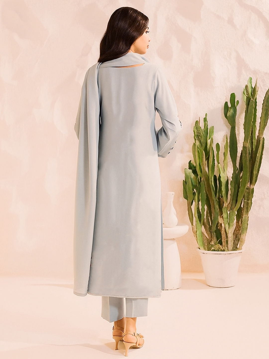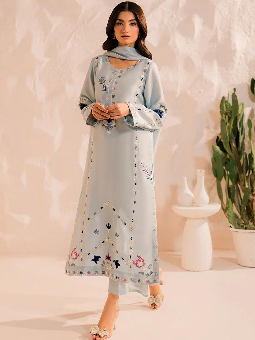 Blue color Salwar Kameez in Chanderi Silk fabric with Embroidered, Thread work