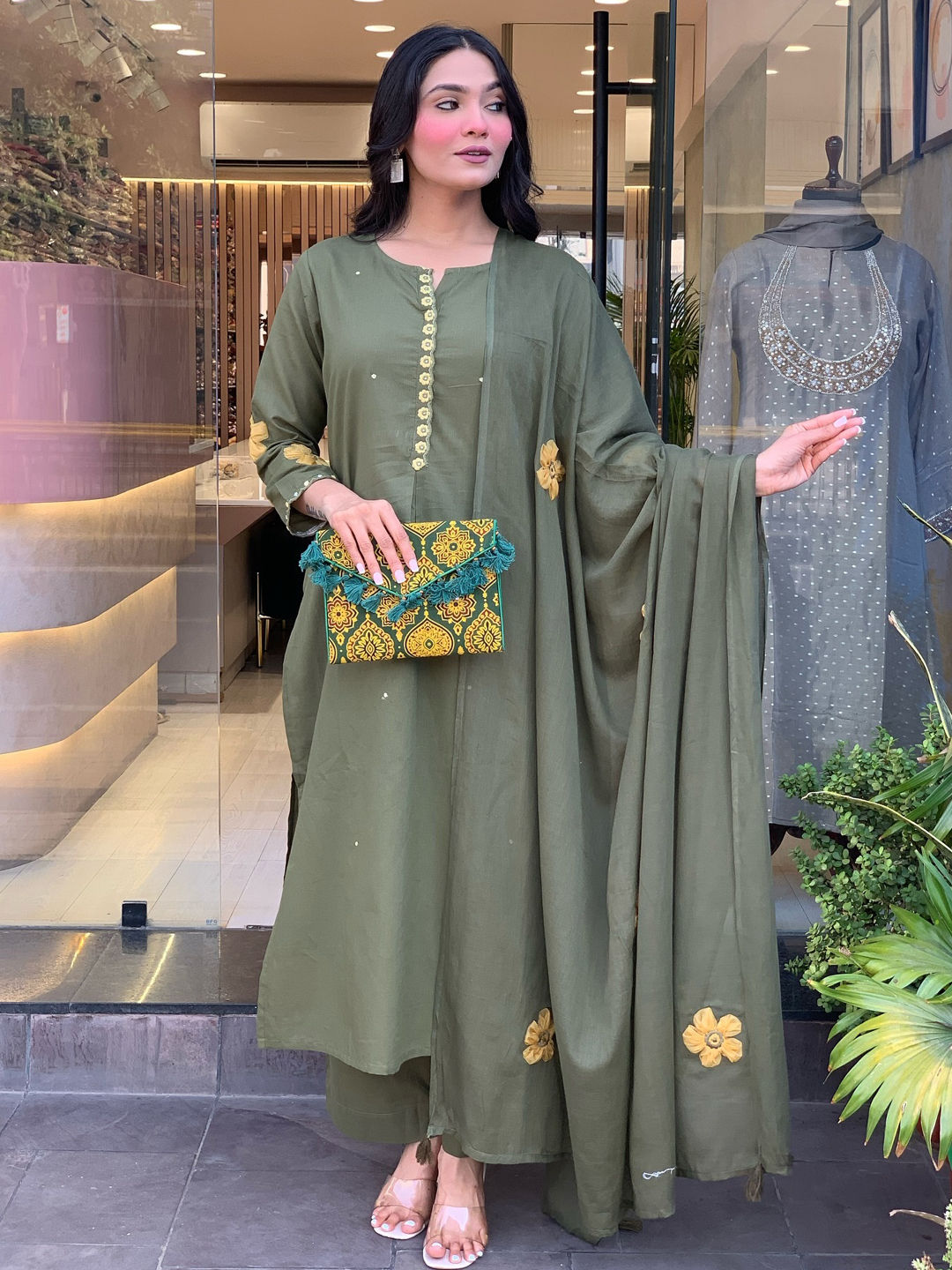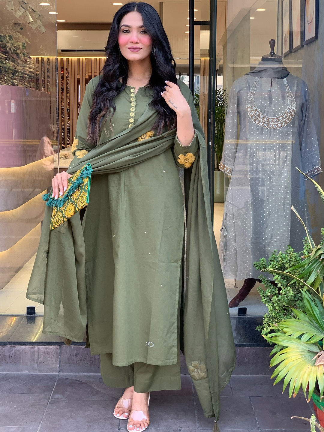 in Green with Thread work