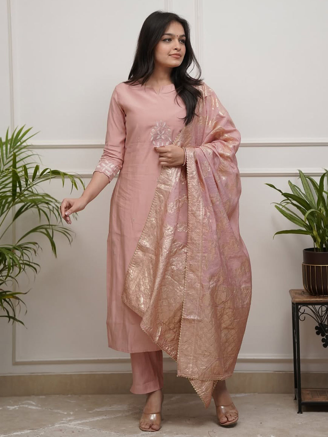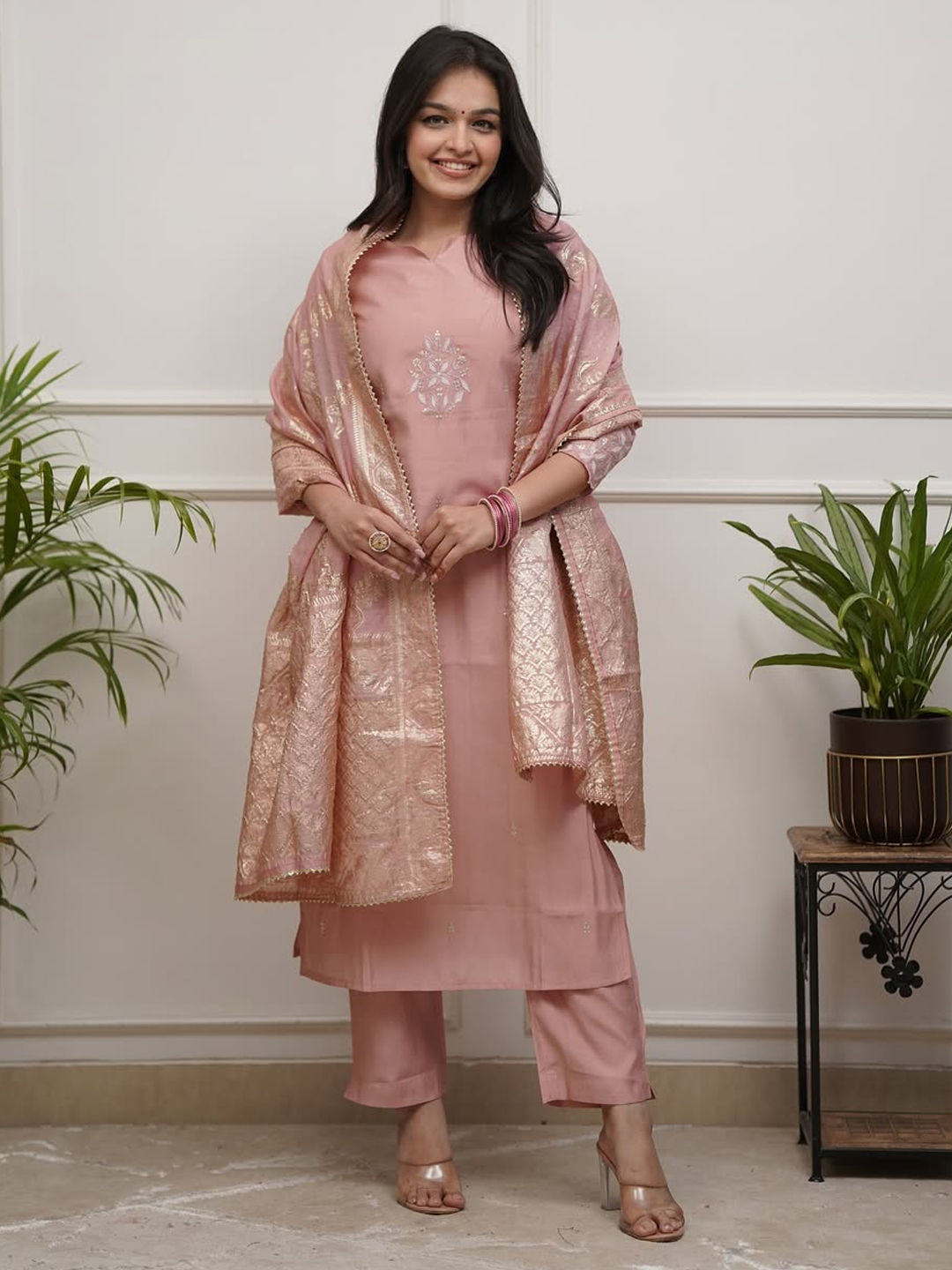 Pink and Majenta color Salwar Kameez in Chanderi Silk fabric with Embroidered work