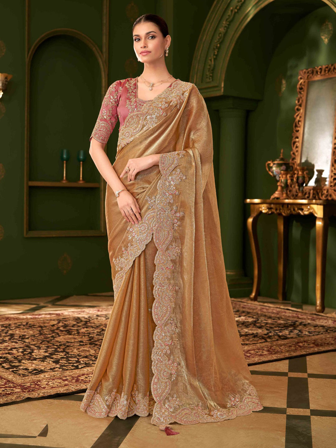 Beige and Brown color Saree in Chiffon fabric with Embroidered, Sequence, Thread work