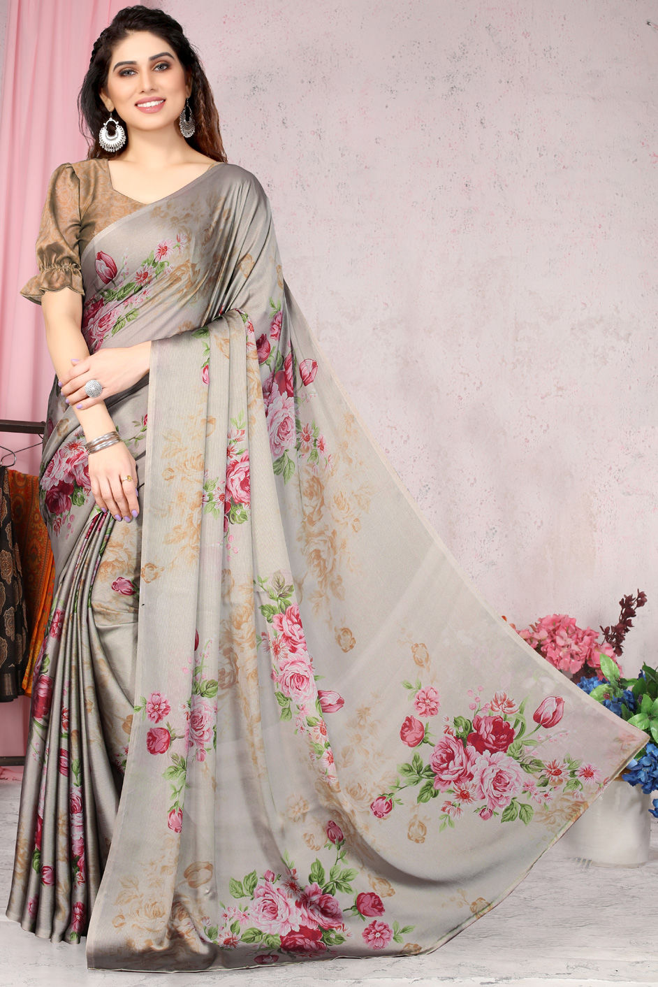 in Beige and Brown with Floral work
