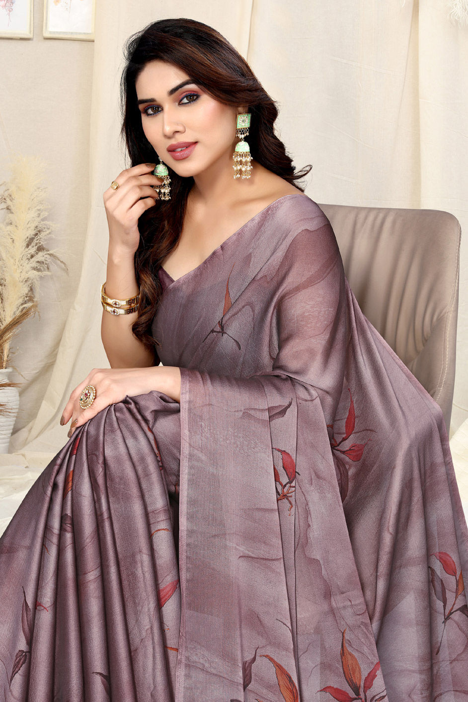 Purple and Violet color Saree in Chiffon fabric with Floral, Printed work