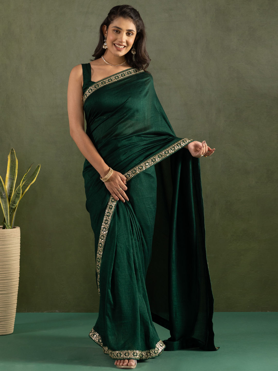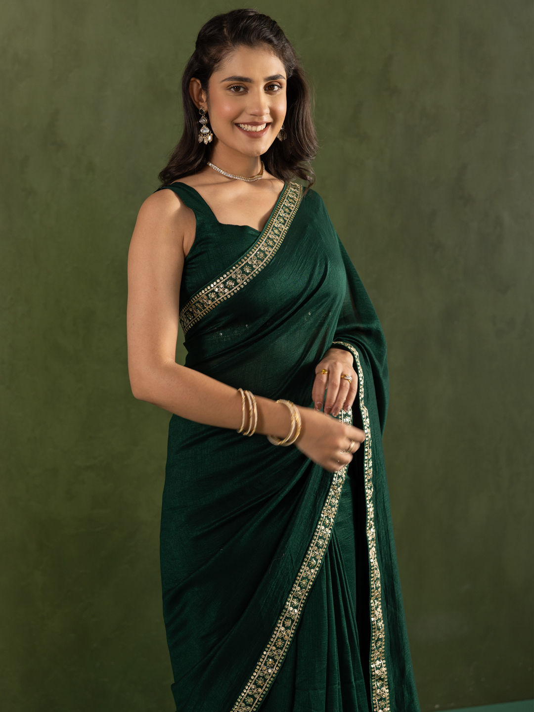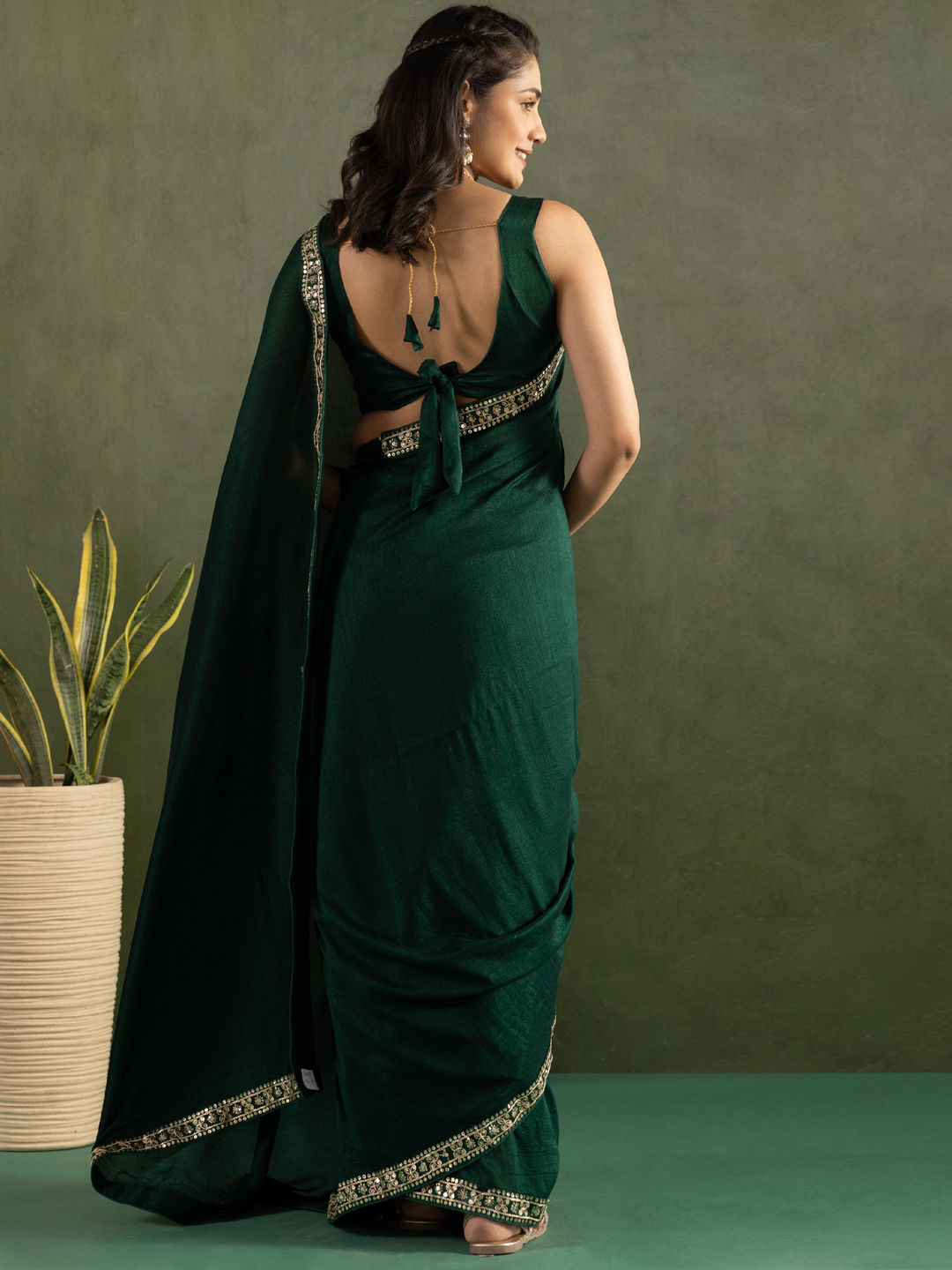 Chiffon Party Wear Readymade Saree in Green with Lace work