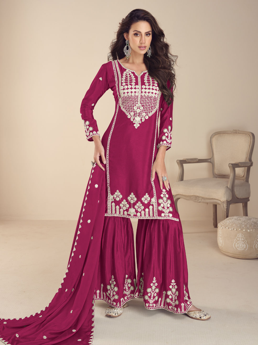 Pink and Majenta color Salwar Kameez in Chiffon fabric with Cut Dana, Embroidered, Sequence, Thread work