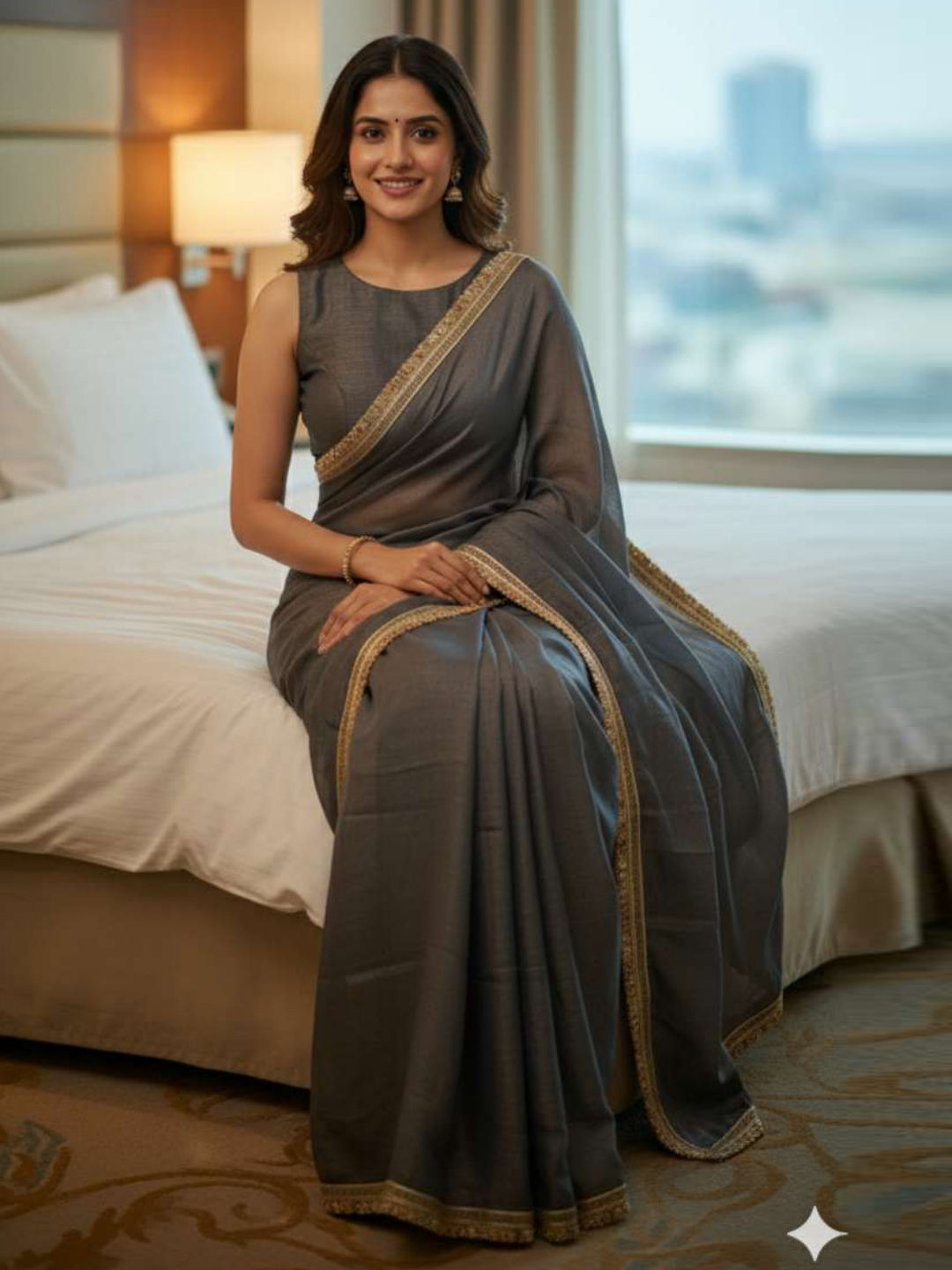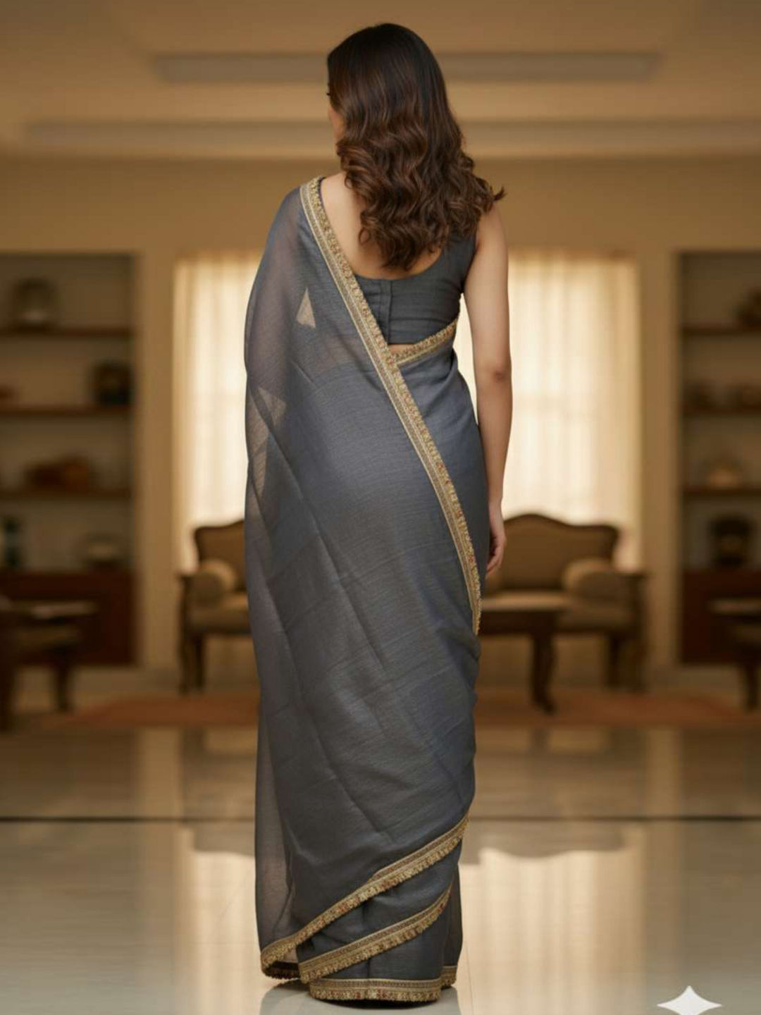 Black and Grey color Saree in Chiffon fabric with Lace work