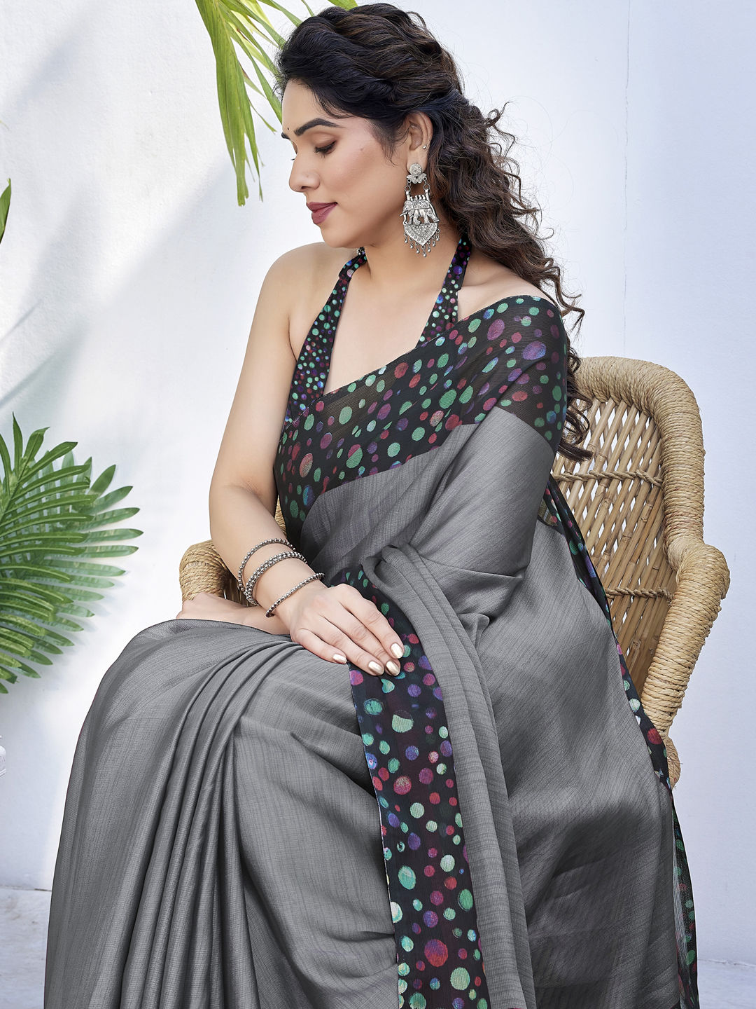Chiffon Reception Saree in Black and Grey with Printed work